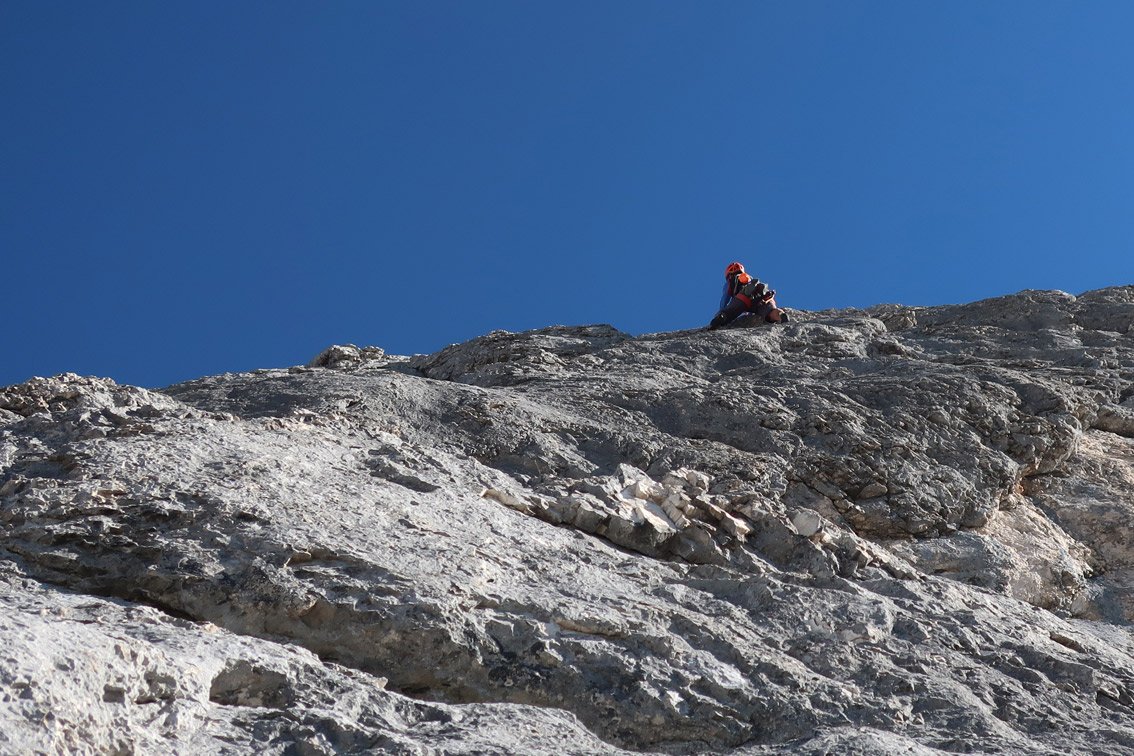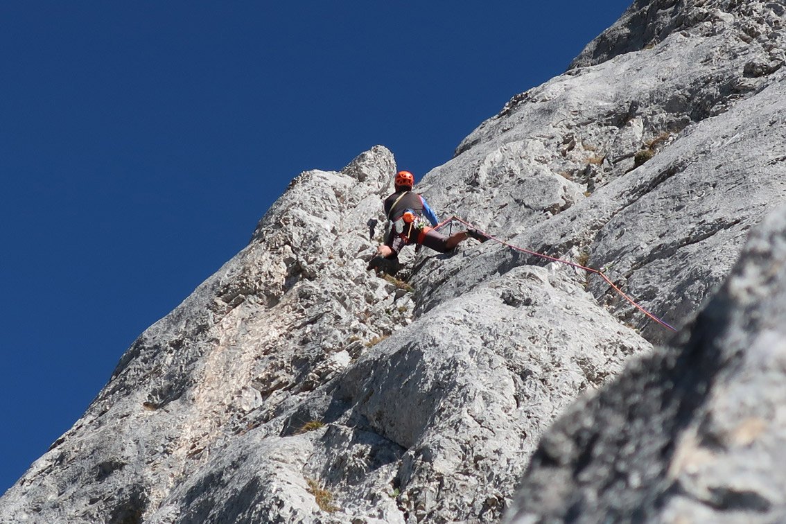 In der 4ten Seillänge der "Linie 2005" an der Zwerchwand.