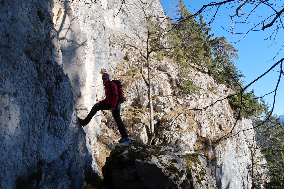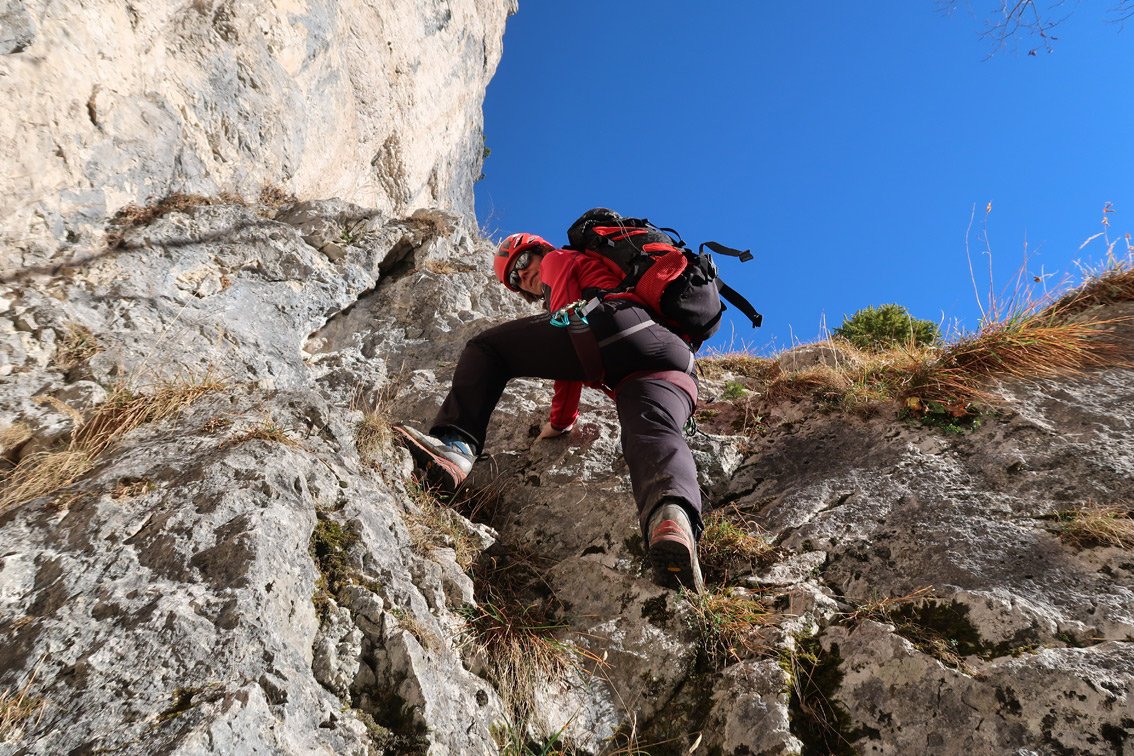 Die "Linke Achsel" kann man auch gut mit Bergschuhen klettern, für den Kofelturm Normalweg sind Kletterschuhe evtl. die bessere Wahl.