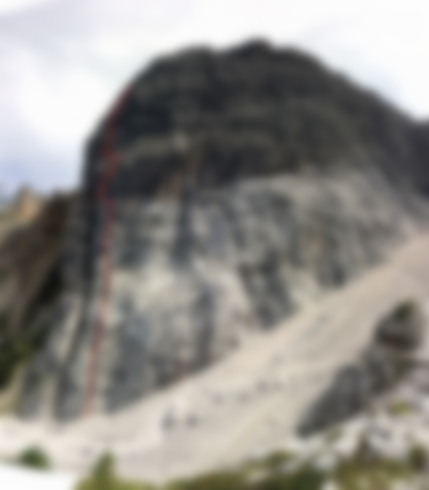 Die Route startet rechts des "Burattipfeilers" über leichtes Gelände, ehe gleich die Schlüssellänge (V+/VI-) folgt. Diese zieht am Ende über eine glatte Platte nach links zum Stand, wo auch die neue Tour "Falco" heraufkommt. Über griffigen Fels führt unsere Führe gerade empor, ehe auch beim nächsten Stand die beiden Routen wieder zusammen kommen. Die Tour wird sehr selten geklettert und es steckt nur wenig fixes Material (außer an den Ständen), also eine super alpine Alternative zu den sanierten Routen an der Westwand.
