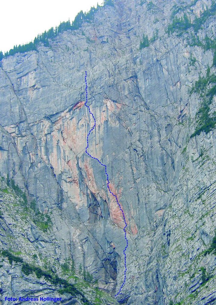 Variante 1: Zustieg zur "Altersvorsorge" wie im Gesäuse Kletterführer beschrieben. Der Einstieg ist mit der "Altersvorsorge" ident.