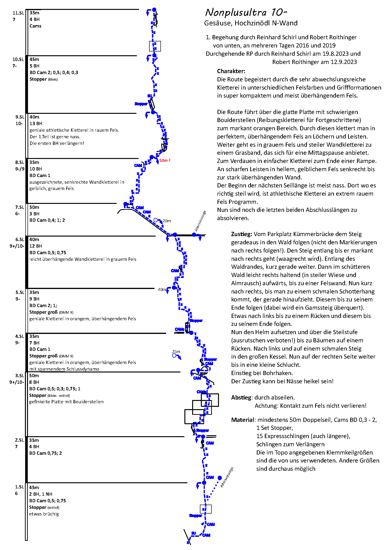 Bohrhaken und mobile Klemmgeräte (von uns verwendete Größen sind im Topo angegeben)
