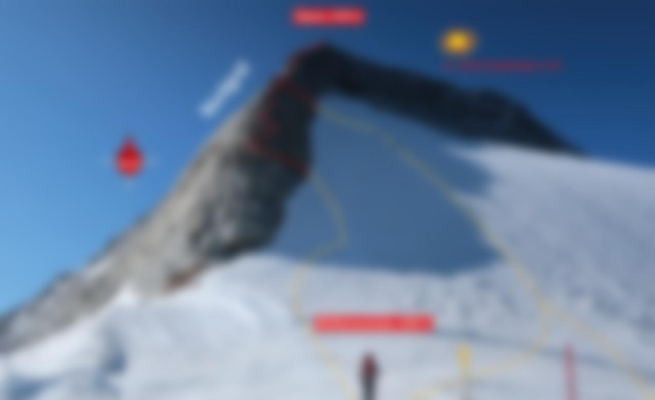 Einfachseil und ein paar Expressschlingen oder Karabiner (größere Karabiner zum Einhängen iin die Entenschnäbel von Vorteil). Für den Zustieg ist komplette Gletscherausrüstung nötig, auch kann der Grat vereist sein - dann ist der Aufstieg eine sehr ernste Angelegenheit!