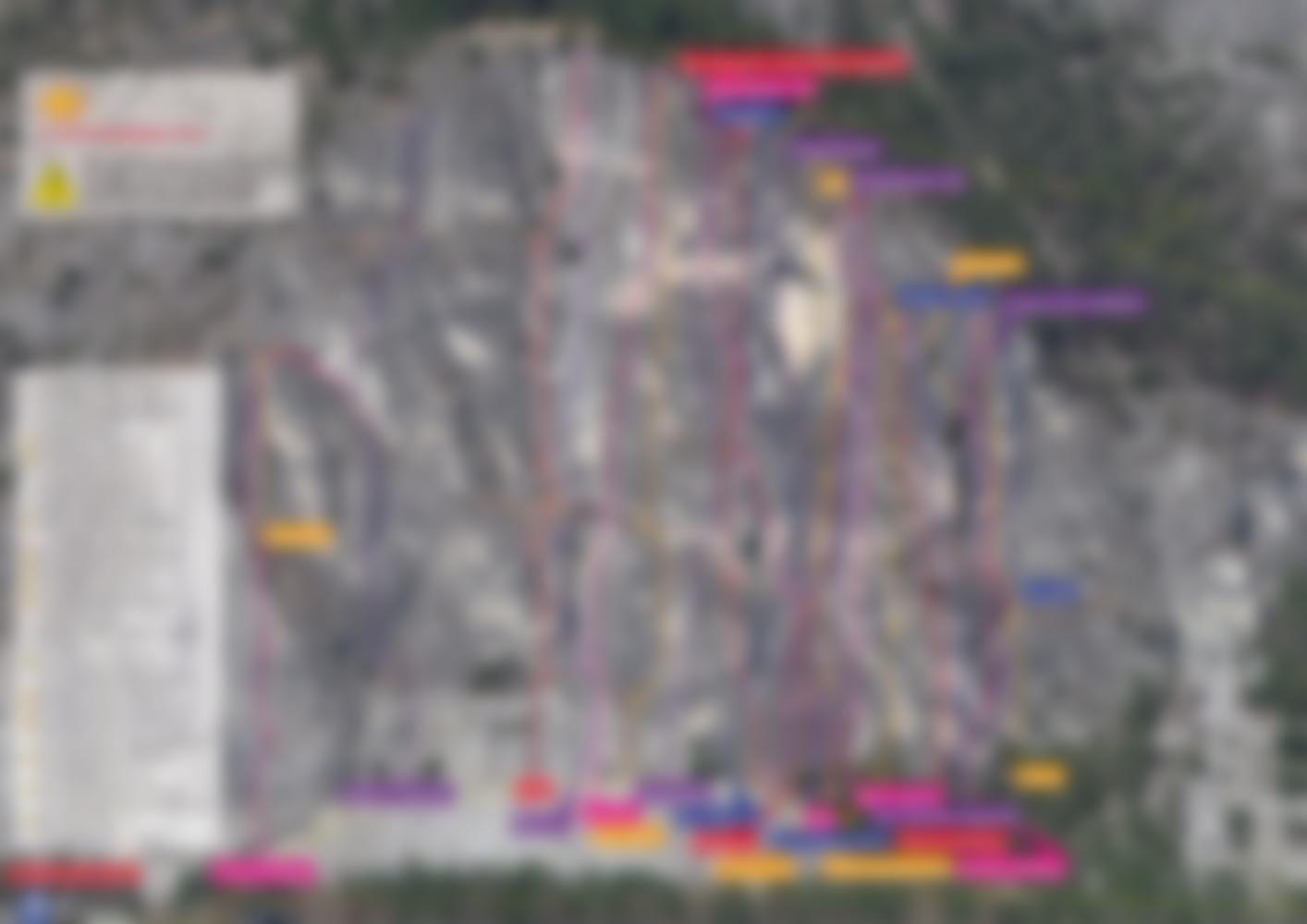 Zuerst über die Autobahngalerie auf die Schotterstraße, auf dieser rechts und später auf Pfadspuren hinauf zur Wand.. Am Ende kurz steiler zu den Einstiegen bei einem kleinen Wäldchen im rechten Wandteil.