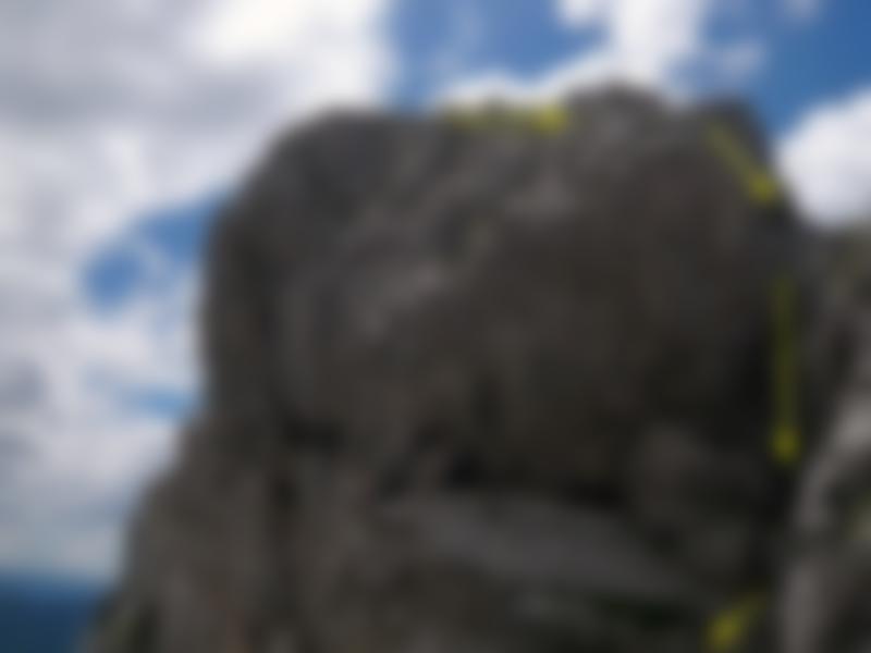 4. Die Gipfelwand leicht rechts haltend aufwärts und ausgesetzt bis zum höchsten Punkt (15m; 3)