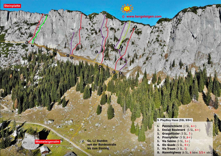 Tipp: Wer mehr an der Steinplatte klettert, dem sei der Steinplatte-Kletterführer von Adi Stocker ans Herz gelegt: mehr ...