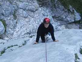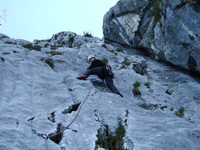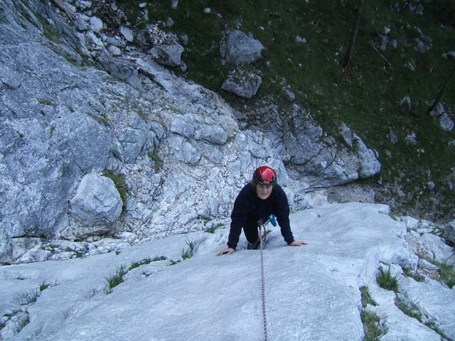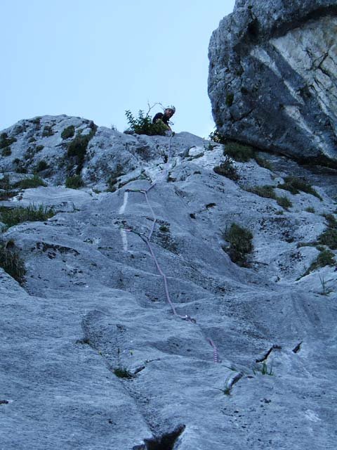 Parallel zur 2. SL gibt es rechts eine weitere Route "Topgrip" (30m IV+, 6 BH)