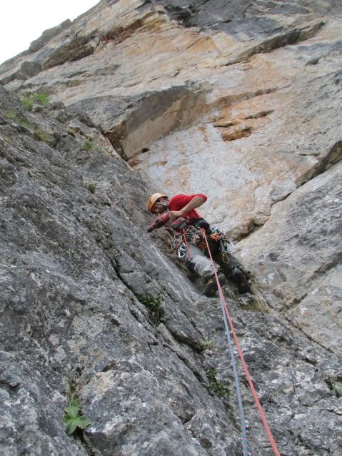 Die 7. Seillänge (8+) ist sehr gut abgesichert und auch 6+/A0 kletterbar.