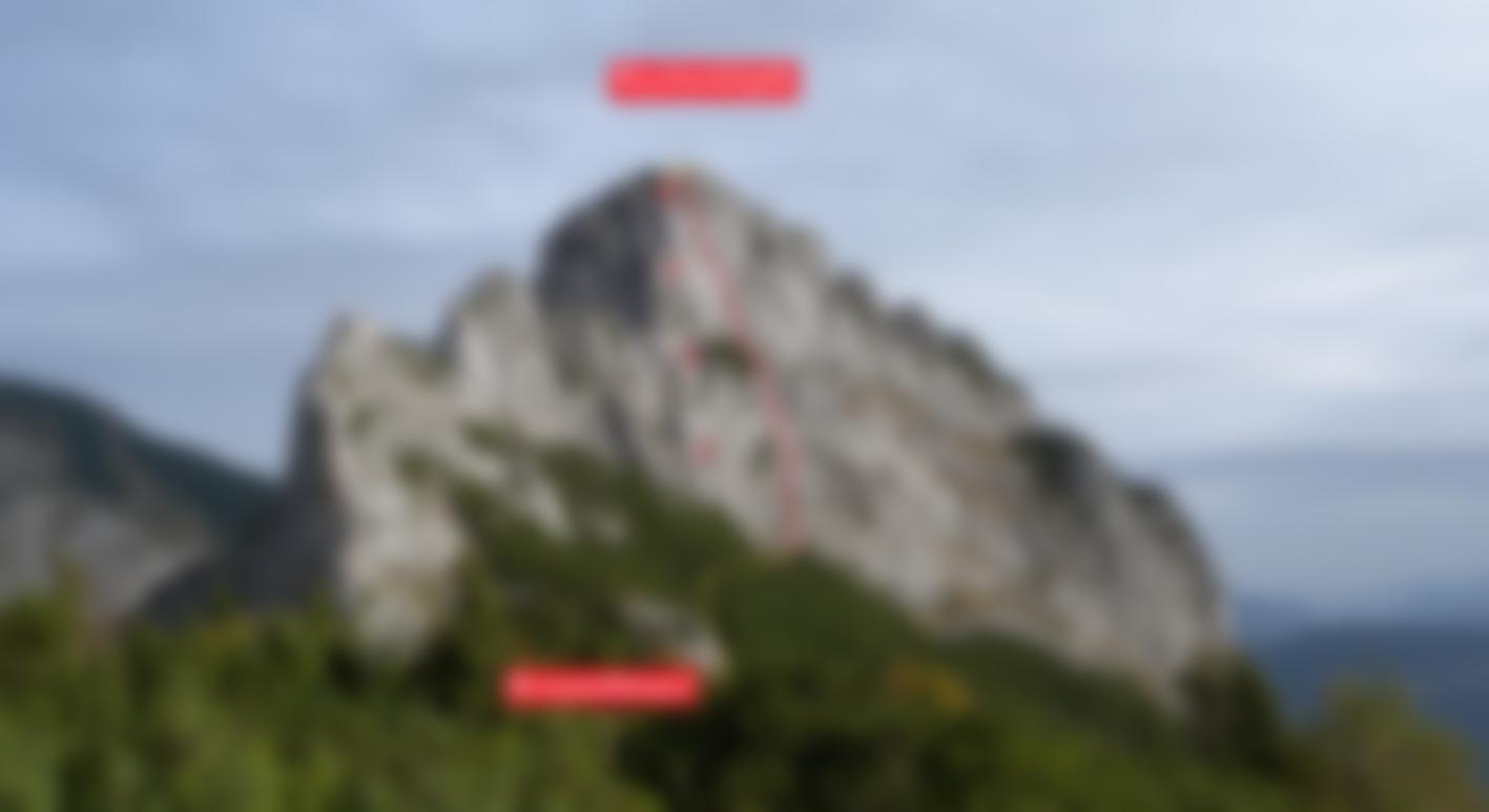 Vom Gipfel nordöstlich auf gut erkennbaren Steigspuren in eine Rinne (Schnittlauchrinne) hinunter zur Bergwachthütte und von dieser weiter absteigen. Alternativ kann man auch 3 x Abseilen (60 m Einfachseil, mit 50 m Einfachseil vier mal).