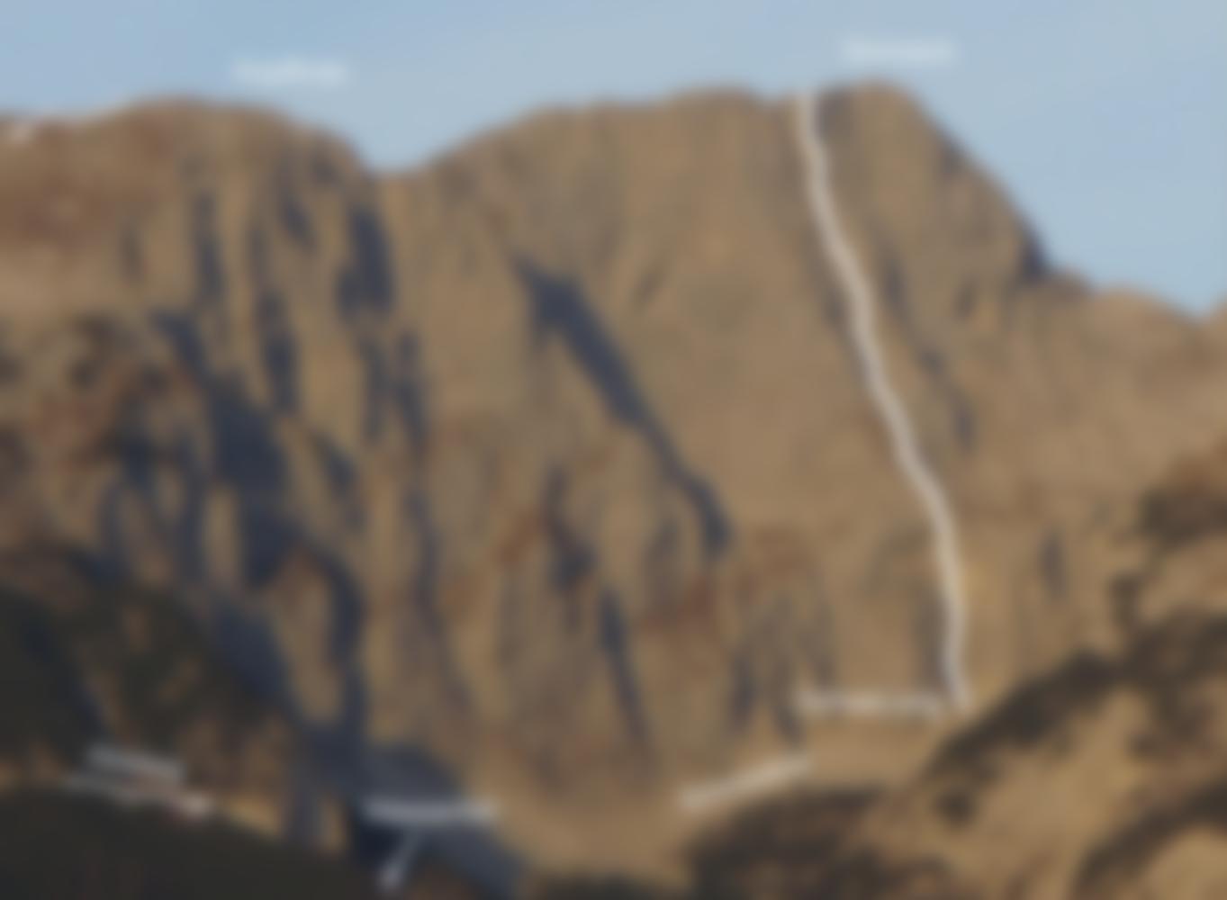 Achtung: Sollten sich bereits Kletterer im oberen Teil der Route befinden ist für nachkommende Seilschaften mit Steinschlag zu rechnen. Besonders der flache Mittelteil ist diesem stark ausgesetzt. Ein Rückzug aus der 3. und 4. Seillänge ist mit Schwierigkeiten (stark überhängend und schräg) verbunden!
