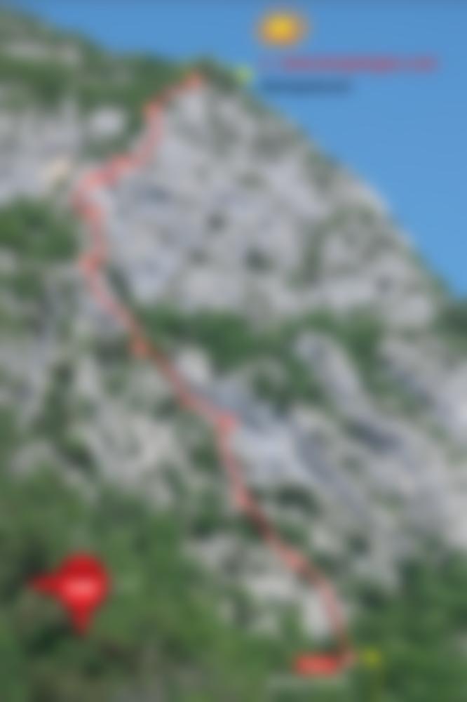Achtung: Bei weitem nicht so gut abgesichert wie die unteren Val di Ledro Mehrseillängentouren - KEINE Plaisirkletterei!