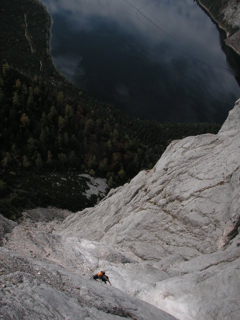 Gesamt ist in der Wand auf Steinschlag zu achten – die ersten beiden Zustiegsseillängen sind etwas brüchig !!
