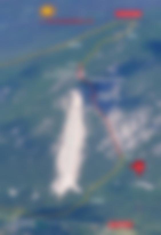 Siehe Topo: Anfangs steiles Gehen, dann bei Pfeil nach rechts zum Grat. Jetzt lange auf dem Grat (Stellen bis 2+), oben quert man einmal bei rotem Pfeil nach rechts (Bohrhaken) parallel zum Grat. Nach diesem erreicht man einen flachen Rücken, dort links (Schlingen an Bäumen und rote Punkte) über eine Stufe zum Standplatz (2 Bohrhaken) an der Schlusswand. Dort jetzt noch 3 Seillängen wie im Topo bis zum Ende.