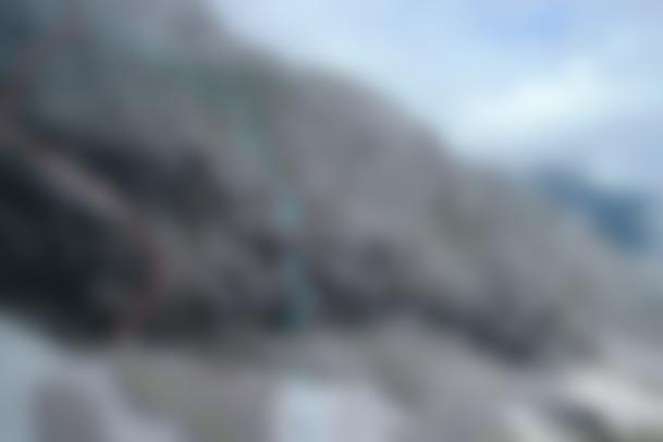Neue Bohrhaken. Hakenabstand ca. 10m. KK-Grundsortiment, 2-3 SU-Schlingen, Friend mittlerer Größe empfehlenswert. Stand 1 und 2 sind mit zwei geklebten Bühlerhaken versehen. Stände 3, 4, 5, 6, 7 sind mit je einem nicht geklebten Bohrhaken (samt vollkommen intakten Laschen) versehen.