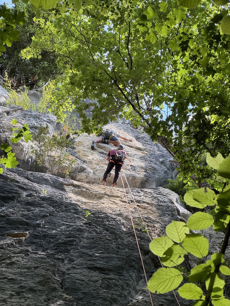 Ernst zunehmende Trad-Kletterei. Die Stände sind gebohrt, ansonsten stecken nur Bohrhaken, wo keine mobilen Sicherungsmittel anzubringen sind. UIAA 8 / E4