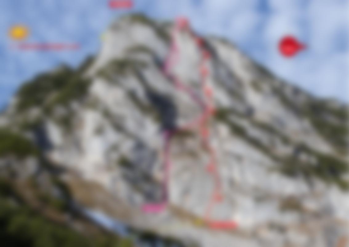 Gut mit Bohrhaken abgesichert, keine Keile und Cams erfoderlich.