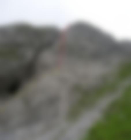 Zur Abseilpiste: Vom Gipfel wenige Meter schräg in östliche Richtung bis zum Wandabbruch absteigen (Steinmann), hier 1. Abseilhaken (vom Steinmann gut sichtbar).