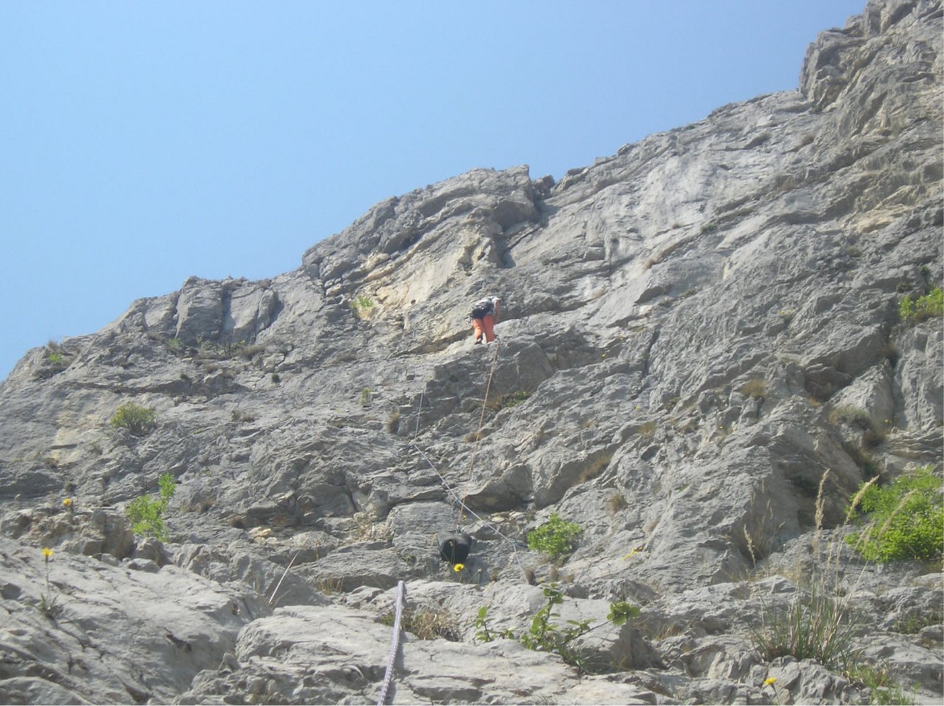 Schöne und lange Kletterei. Alpine Erfahrung und Orientierungsvermögen für die leichteren zum Teil brüchigen SL unbedingt erforderlich! Den 6-ten Grad sollte man sicher klettern!