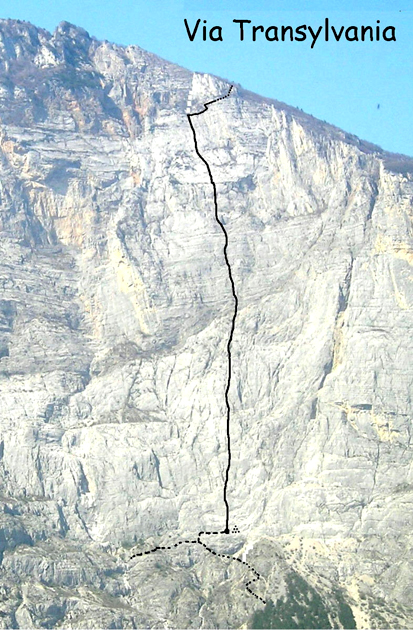 Vom Parkplatz zuerst Richtung Sarche ca. 200m, dann am rechten Rand des Steinbruches über einen licht bewaldeten Rücken ins Bergsturzgelände am Fuß der Casale-Ostwand aufsteigen. Ungesichert empor über den Felsvorbau, dann rechts in einer 50 m Querung zum Einstieg: Steinmandl und Bohrhaken aus ROSTFREIEM !!! Stahl. 45-60 min.