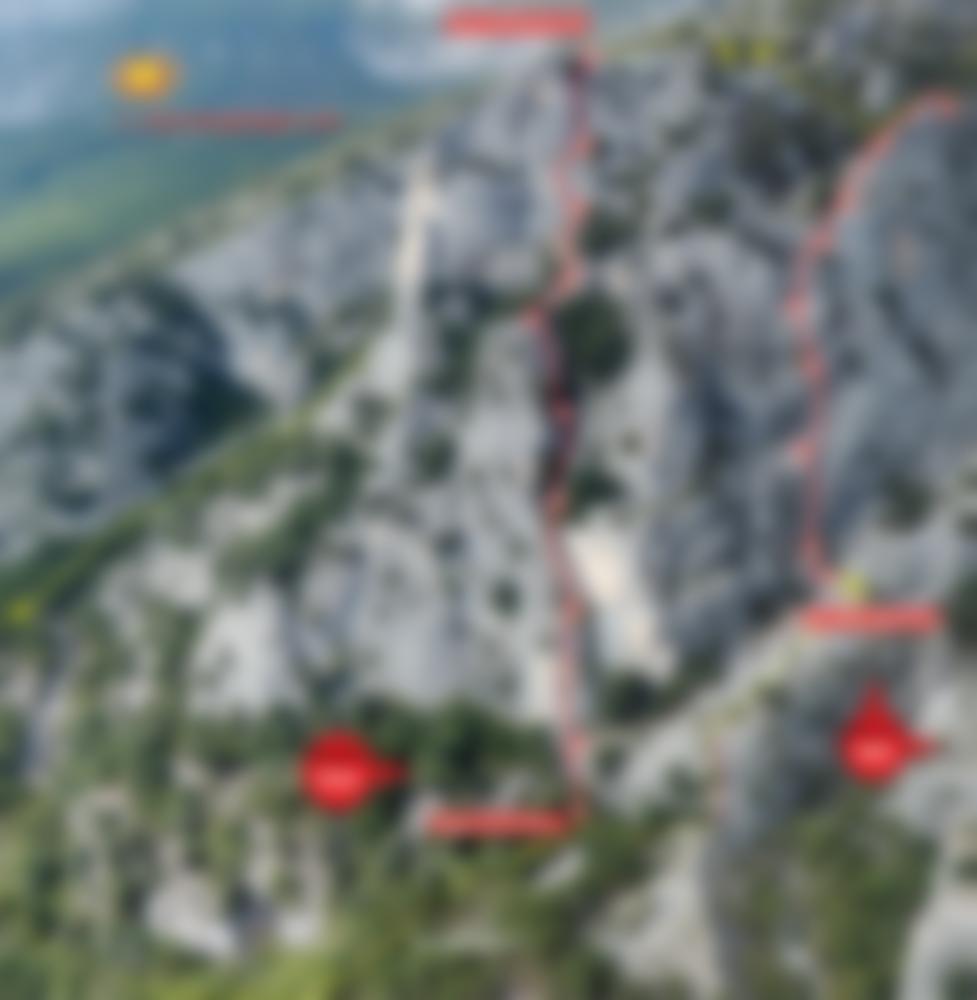 Recht gut mit Bohrhaken und wenigen Normalhaken und Sanduhrschlingen ausgestattet.