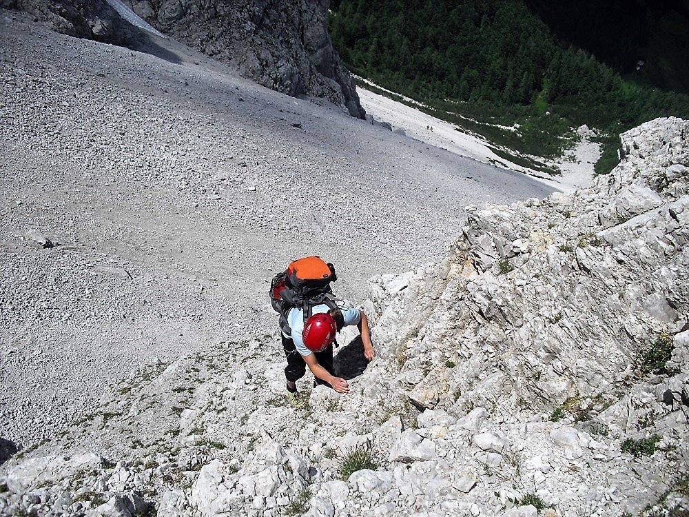 Die Tour ist eher brüchig und auf keinen Fall die erste Wahl, wenn es um das Klettern in den Karawanken geht. Wer auf der Suche nach einer abenteuerlichen, anspruchsvollen Bergtour ist könnte hier fündig werden. Auf jeden Fall sollte man weit über dem geforderten 4. Schwierigkeitsgrad stehen, um sich einen sicheren Weg durch das brüchige Gestein suchen zu können. In der Tour finden sich einige Bohr- und Normalhaken, die Stände sind gebohrt und zum Abseilen ausgestattet. Es handelt sich aber um keine Plaisirtour, die Bohrhaken sind auf Grund der Brüchigkeit oft wohl die einzige Sicherungsmöglichkeit. Mobile Sicherungsmittel sind in dem brüchigen Gestein sehr schwer unterzubringen.