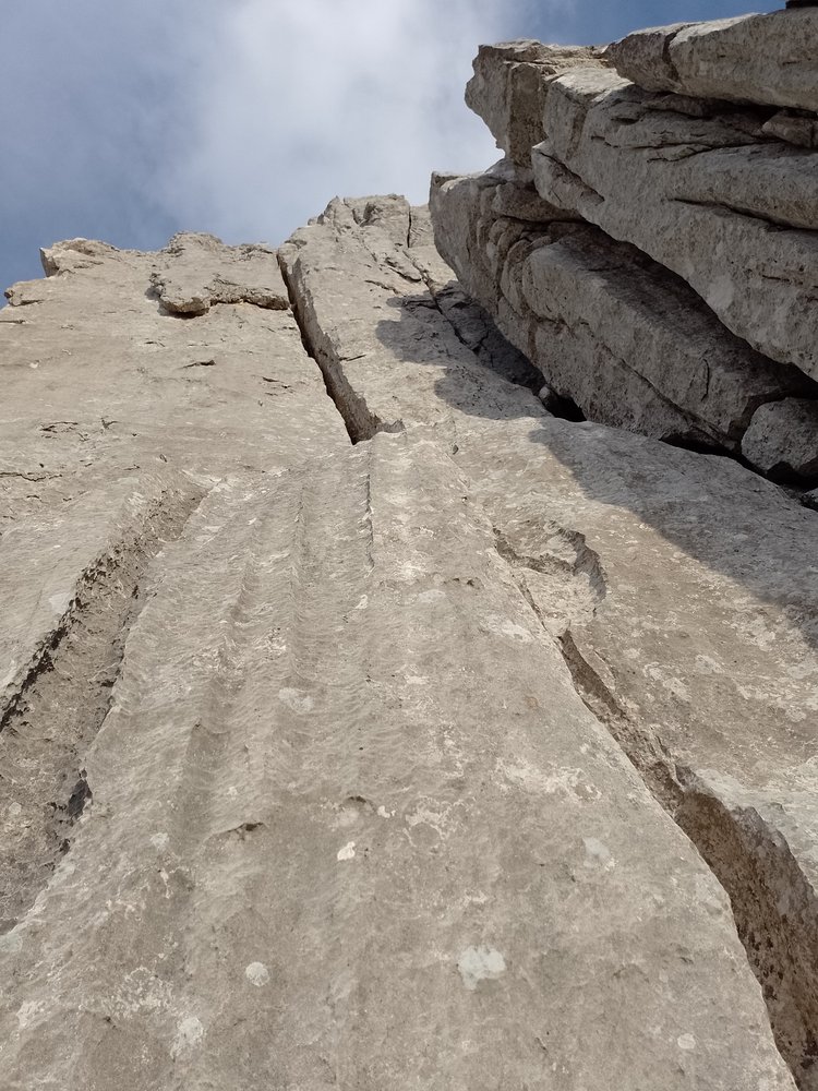Entweder abseilen, oder weiter die Schafbergkante dranhängen und dann dort absteigen. (10SL bis 5c)