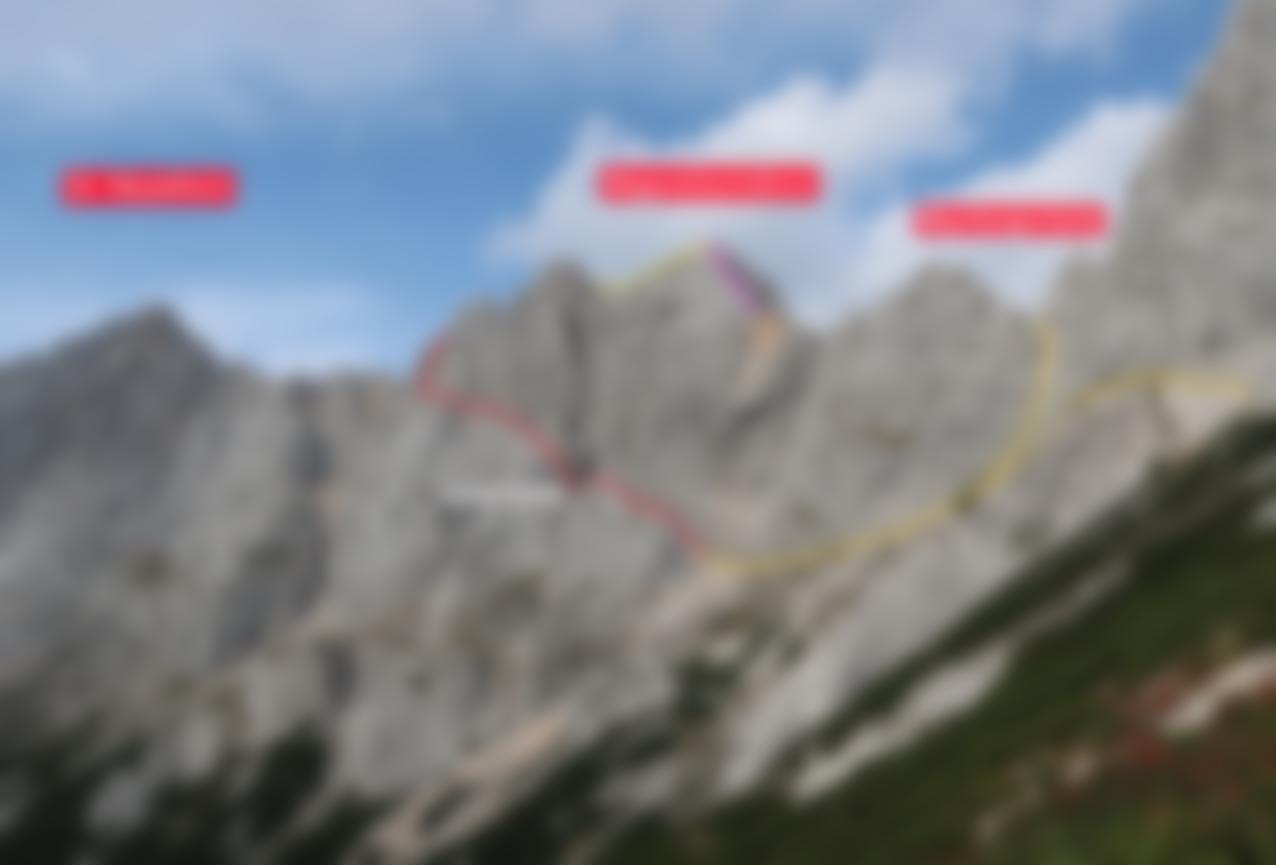 Die Tour wird auch oft seilfrei geklettert. Der Anstieg ist mit Hilfe des Topos und tlw. vorhandenen Steinmännchen gut zu finden. Achtung bei Schneelage oder Regen - dann wird das Ganze zu einer gefährlichen Rutschpartie.