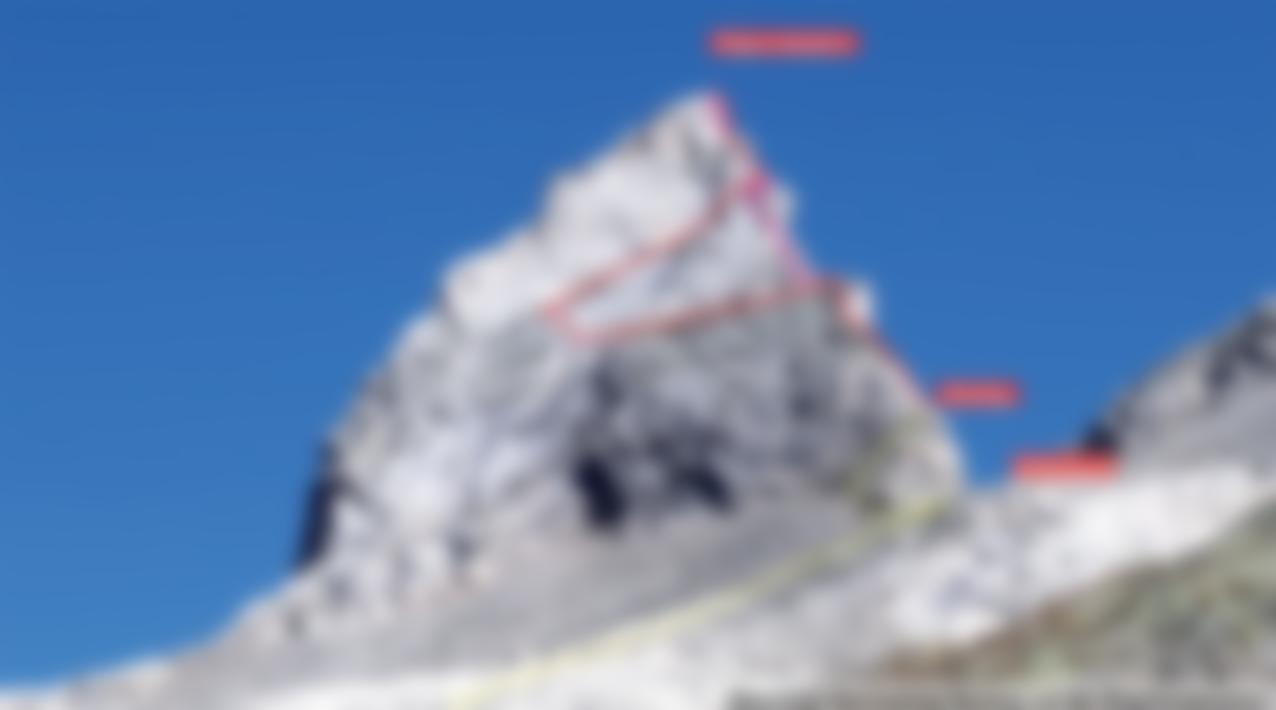 Siehe Topo. Man folgt zuerst dem Grat, dann weicht man links auf einem Felsband aus, welches wieder zum Grat führt. Am Ende wieder auf dem Grat bzw. ganz oben leicht rechts davon zum Gipfel.