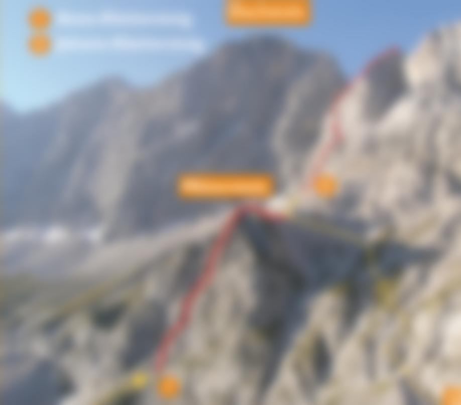 Nach dem Steigende entweder links weiter und über den Johann-Klettersteig (E) aufsteigen oder rechts über den Johann-Zustiegsweg (Stellen A/B) hinunter zur Südwandhütte und weiter zur Talstation absteigen.