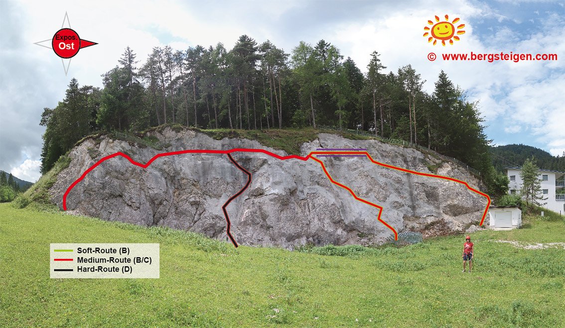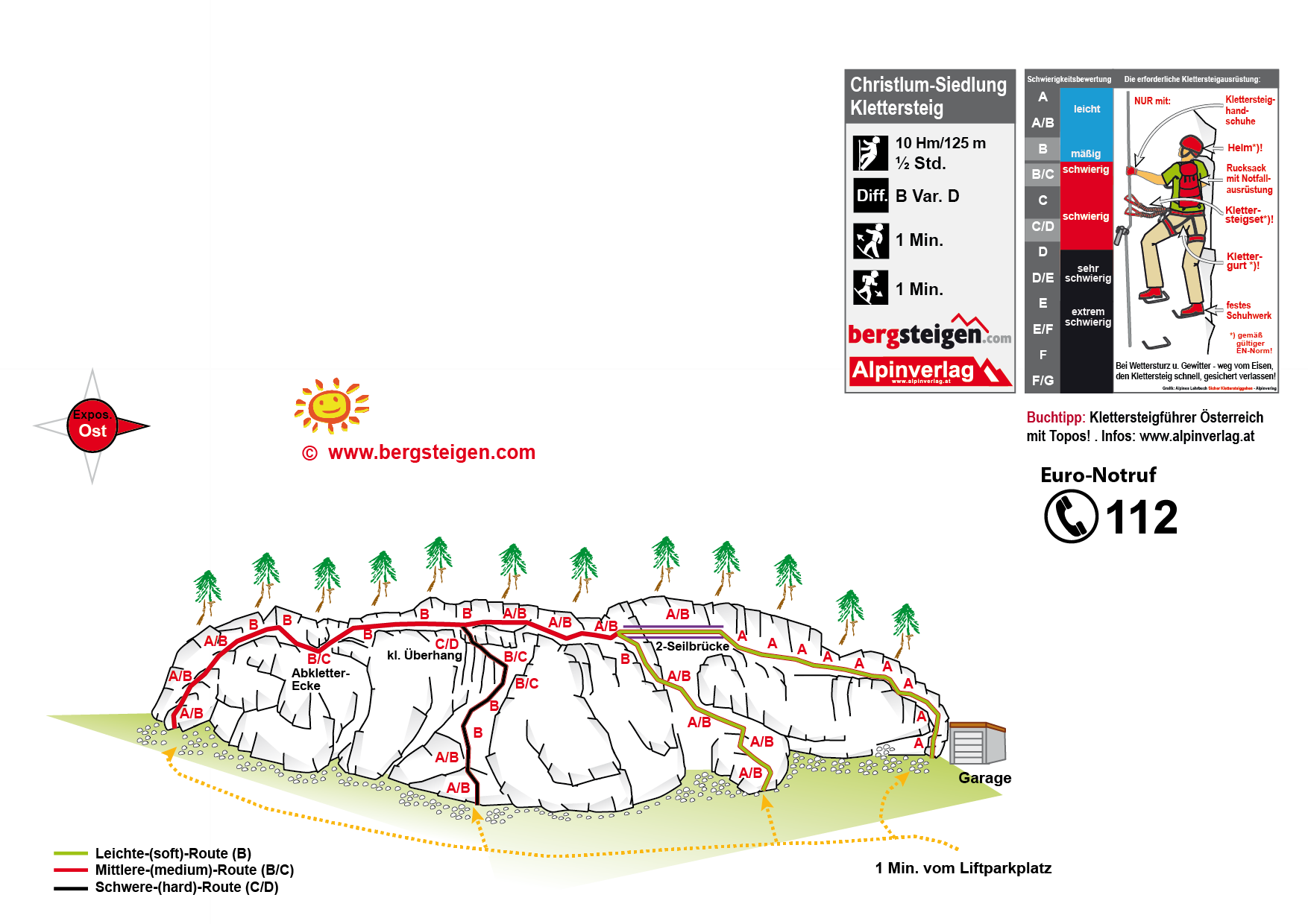 Eigene Anfahrt zu dieser Mini-Ferrata lohnt sich nicht. Wer aber in der Region Urlaub macht, kann sich das bei unsicherem Wetter (der Zu- und Abstieg ist 1 Minute) einmal anschauen.