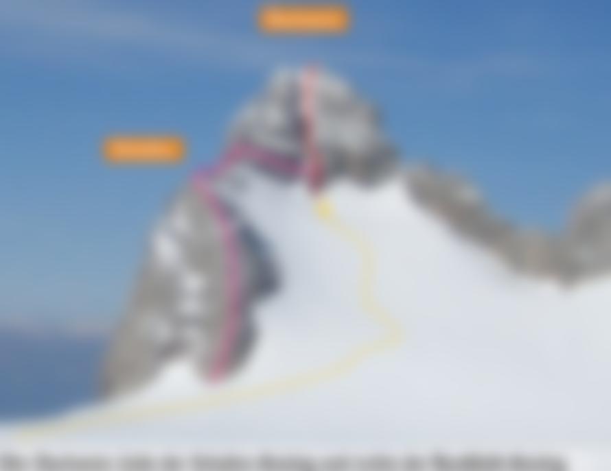 Bereits vor der eigentlichen Randkluft lauern oft riese Gletscherspalten, die man oft nicht gleich erkennt. Aus Gletscher-Gefahren Sicht sicherer ist der Anstieg über die Schulter, der ebenfalls versichert und auf bergsteigen.com beschrieben ist.