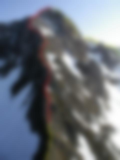 Vom Gipfel des Kleinen Triebes etwa 40 Hm in einen Sattel absteigen (A). Rechts an einem markanten Felsblock vorbei (A) zu einer Platte (B/C) und über mehrere Aufschwünge (A) zu einem ausgesetzten Eck (A/B). Durch zwei Rinnen (A/B) hinauf und anschließend auf dem Grat (A bis A/B) zum Gipfel des Hohen Triebes.