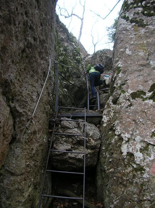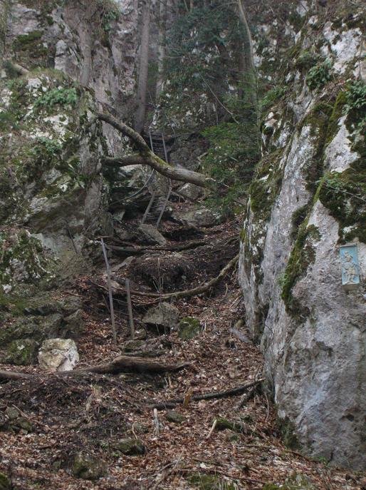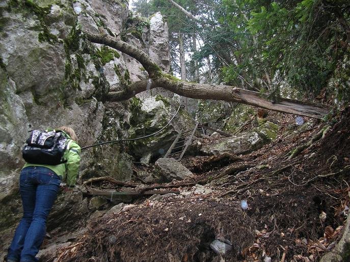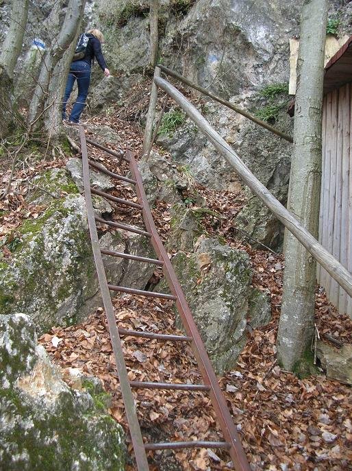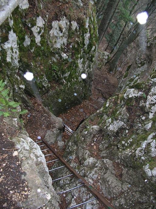 Sehr leichter, kurzer mit mehreren einfachen Leitern und Seil versicherter Steig von Dreitstetten auf die Hohe Wand.