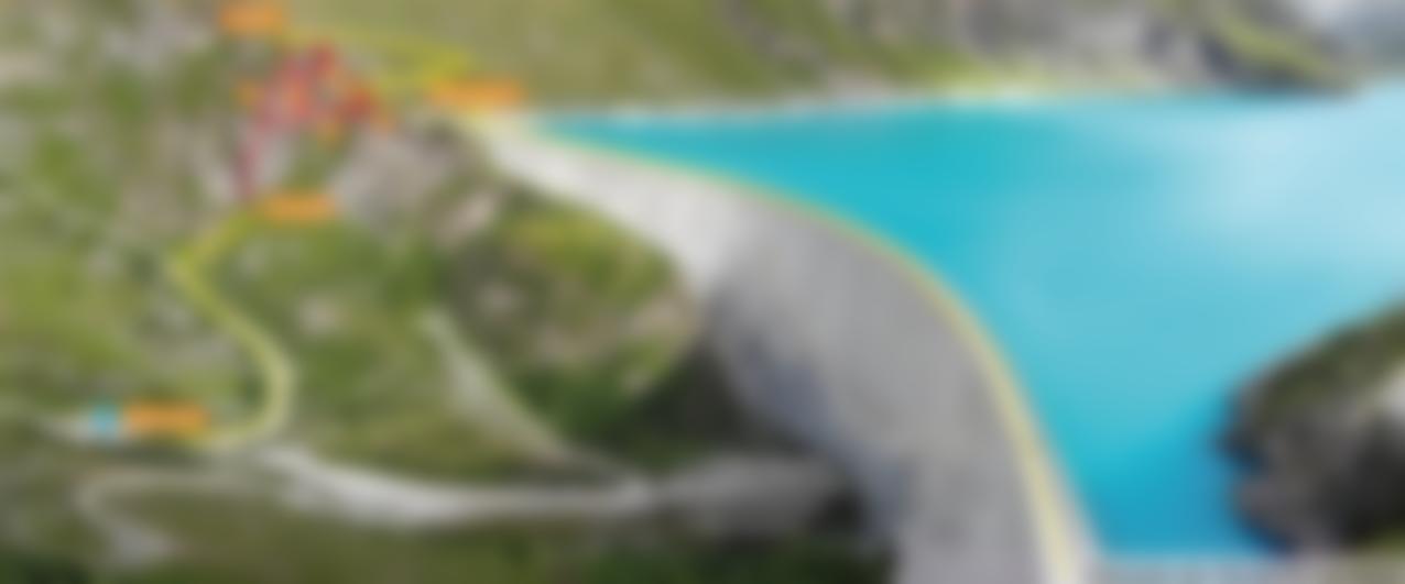 Vom Ausstieg zur Hütte und entweder auf einer kleinen Sraße oder weglos über Wiesen zur Staumauer hinunter, wo das Postauto wartet und ein Restaurant steht. Wer mit seinem eigenen Auto angereist ist, überquert die 610 m lange Staumauer, wirft noch einmal einen Blick zurück auf den Steig, an dem die Kletterleistung vollbracht wurde und steigt auf einem Weg westlich der Staumauer ab.