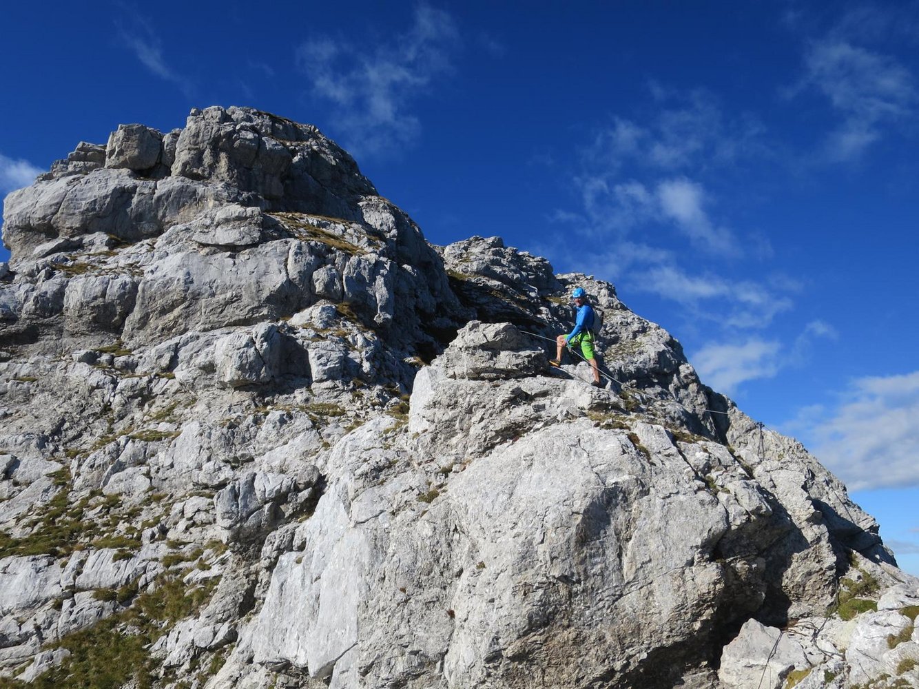 Der Hexensteig ist ein reizvoller, alpiner Anstieg. Der nicht durchgehend versicherte Klettersteig verläuft großteils direkt am Grat zwischen Natterriegel und Hexenturm und stellt eine Begradigung zum Normalweg durch das oberste Rosskar dar.