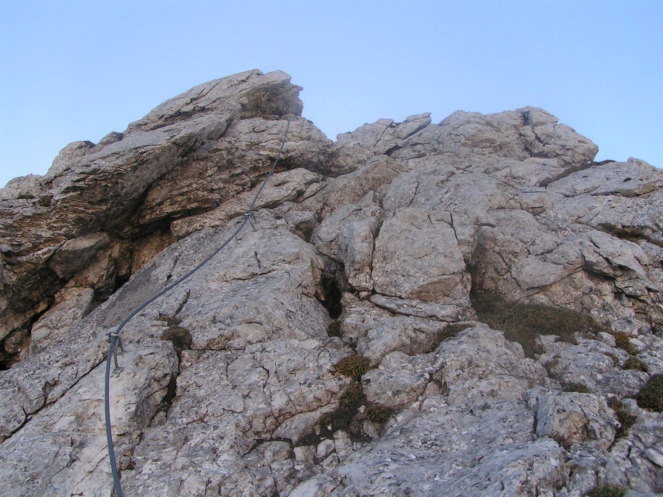Lässt sich gut mit einer Besteigung des Hexenturmes verbinden (A/B; 130 Hm zusätzlich), in diesem Fall folgt man dem Grat weiter nach zum Gipfel des Hexenturms.