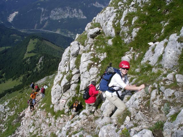 Dieser leichte Klettersteig ist Teil der Überschreitung des Großen Pyhrgas, dem höchsten Gipfel der Haller Mauern. Die beeindruckende Aussicht wird leider mit einem großen Besucherandrang bezahlt.