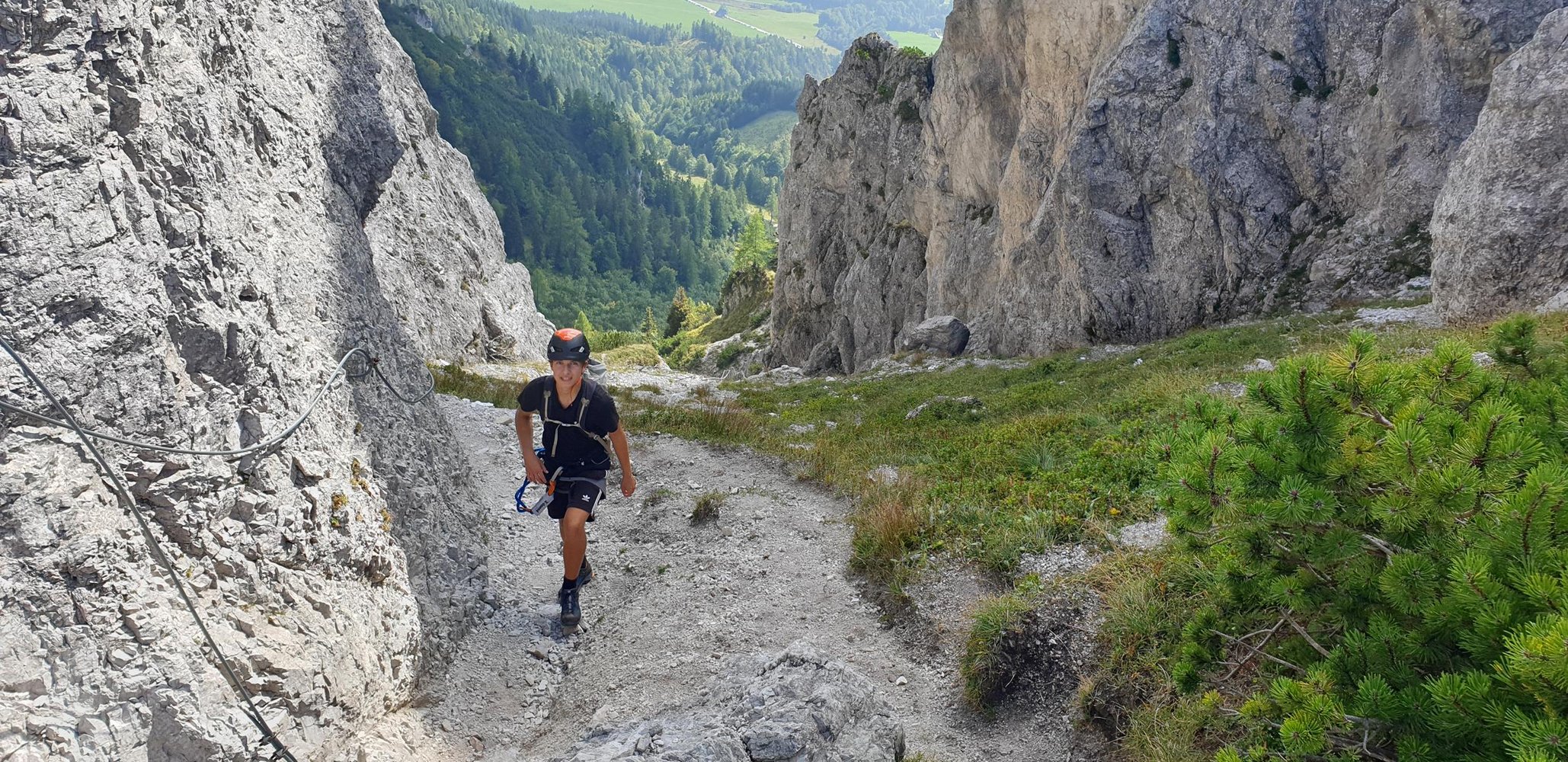 Klettersteigset, Helm, für Kinder event. kurzes Sicherungssei