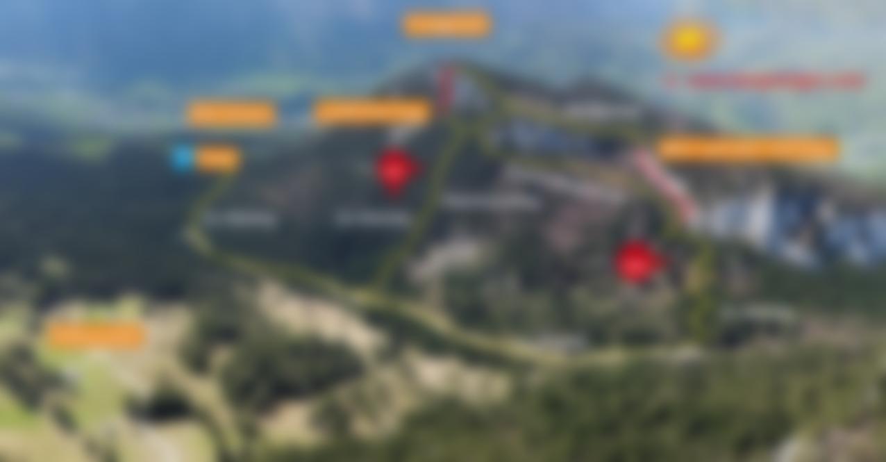 Übersicht Detail: Links der Leadership Klettersteig, rechts der Mein Land dein Land Klettersteig