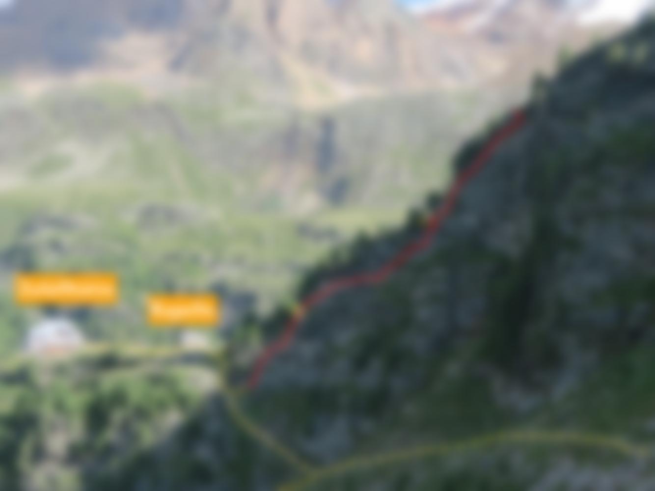 Vom Talschluss den Wegweisern folgend auf einem bequemen Wanderweg zur Zufallhütte aufsteigen. Von der Hütte kurz in westlicher Richtung zur bereits sichtbaren Felswand queren.