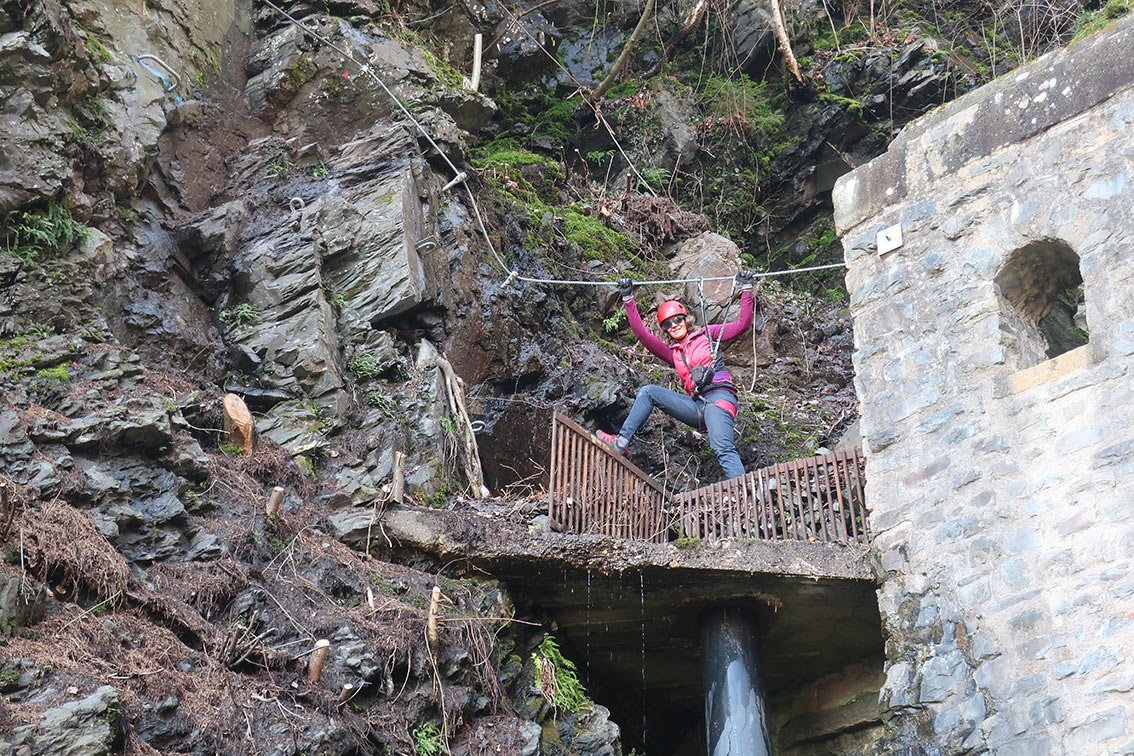 Achtung: Diesen Klettersteig kann man nicht mit den Wandersteigen an der Mosel und am Rhein vergleichen - deutlich anspruchsvoller als z. B. „Collis-Steilpfad“, „Calmont-Klettersteig“, „Rabenecksteig“ oder „Mittelrhein-Klettersteig Boppard“ - aber nicht ganz so fordernd wie der komplette Manderscheid-Klettersteig inkl. Etappe Niederburg Teil 1.