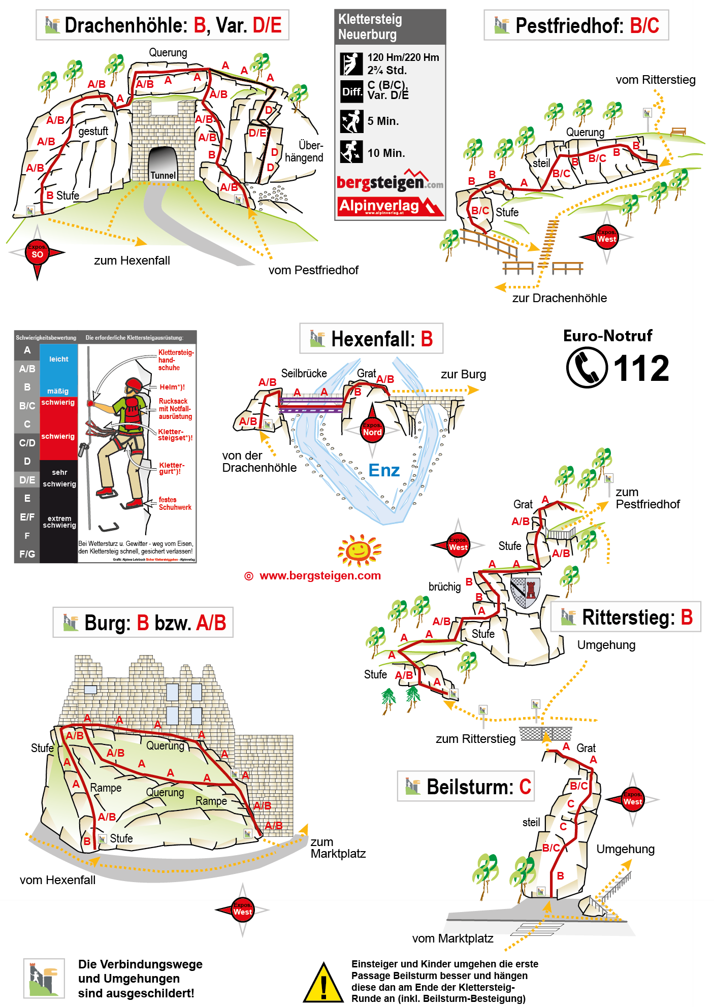 Am Ritterstieg und bei der Drachenhöhle (linke und rechte Wand) ist auf Steinschlag zu achten.