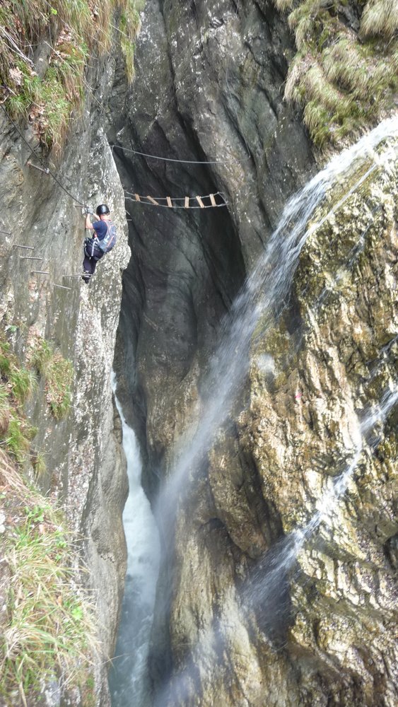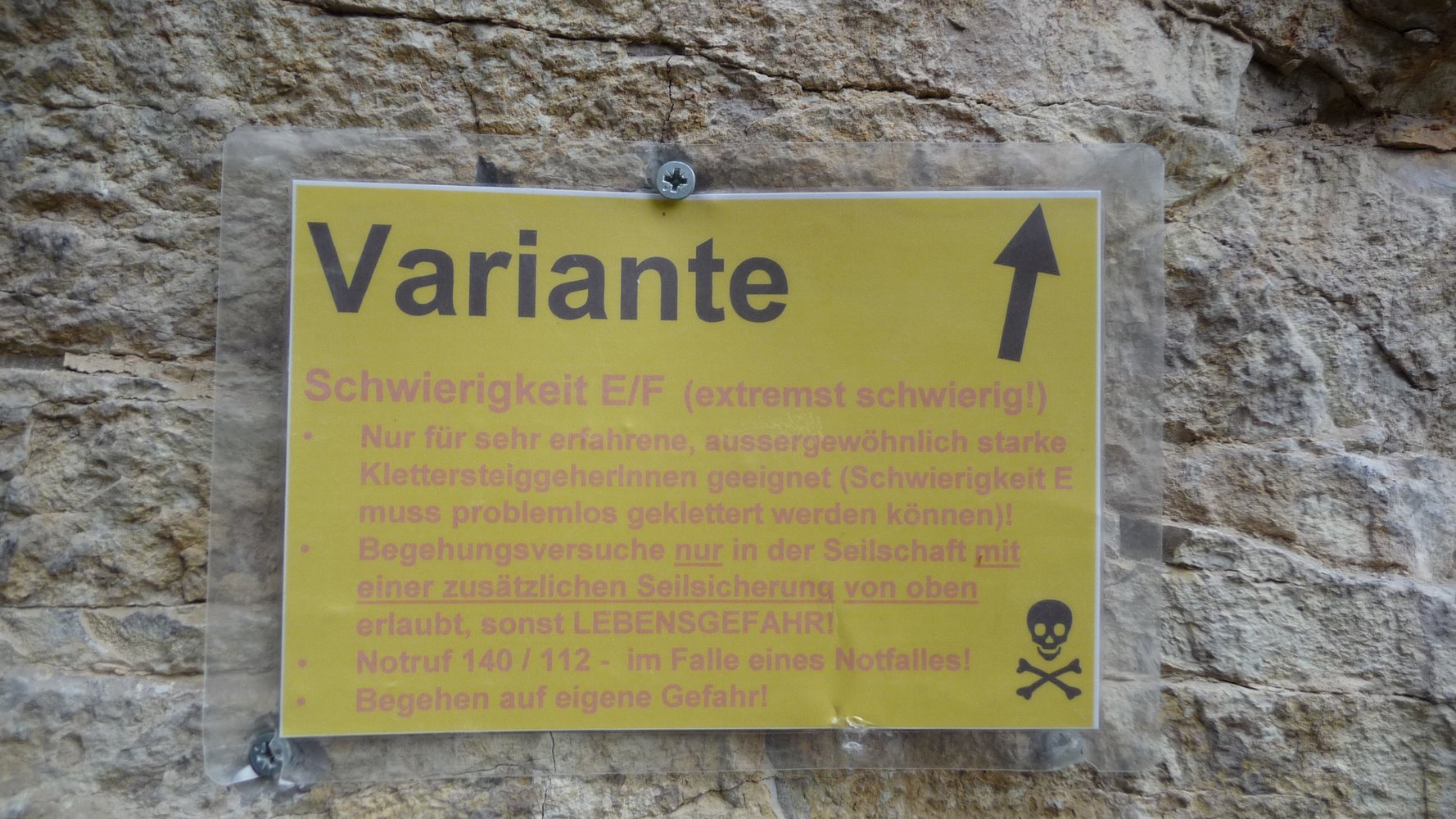 Die F-Variante sollte wirklich nur von sehr versierten Klettersteiggehern gemacht werden, die viel Erfahrung im Schwierigkeitsgrad E haben!