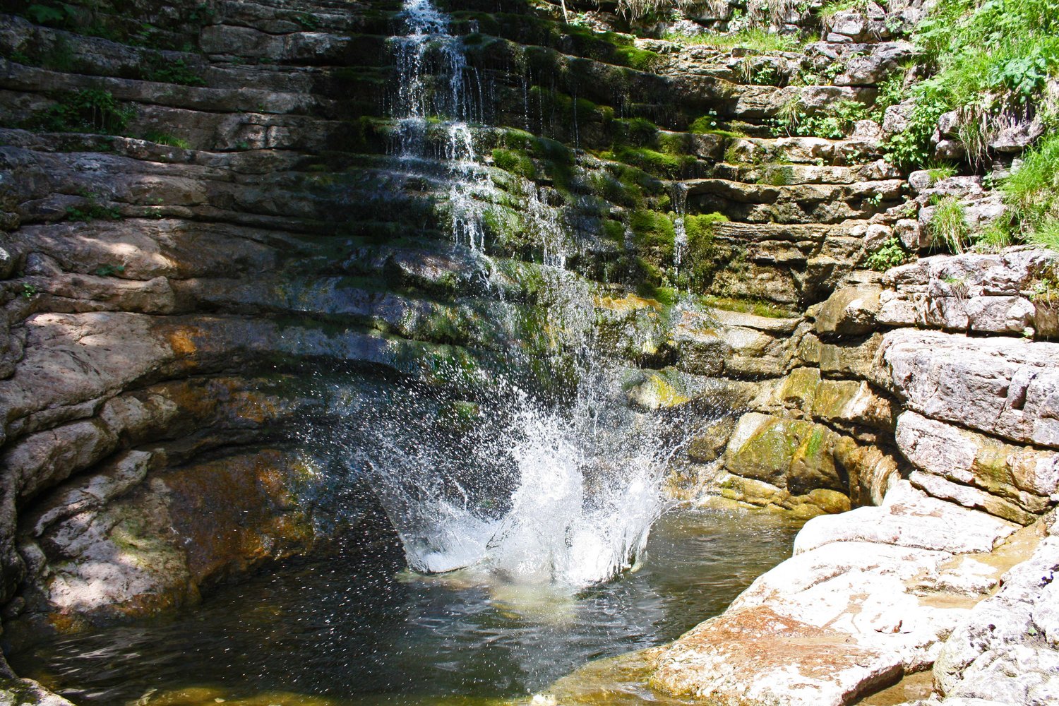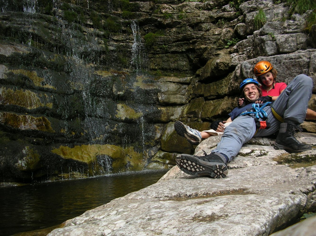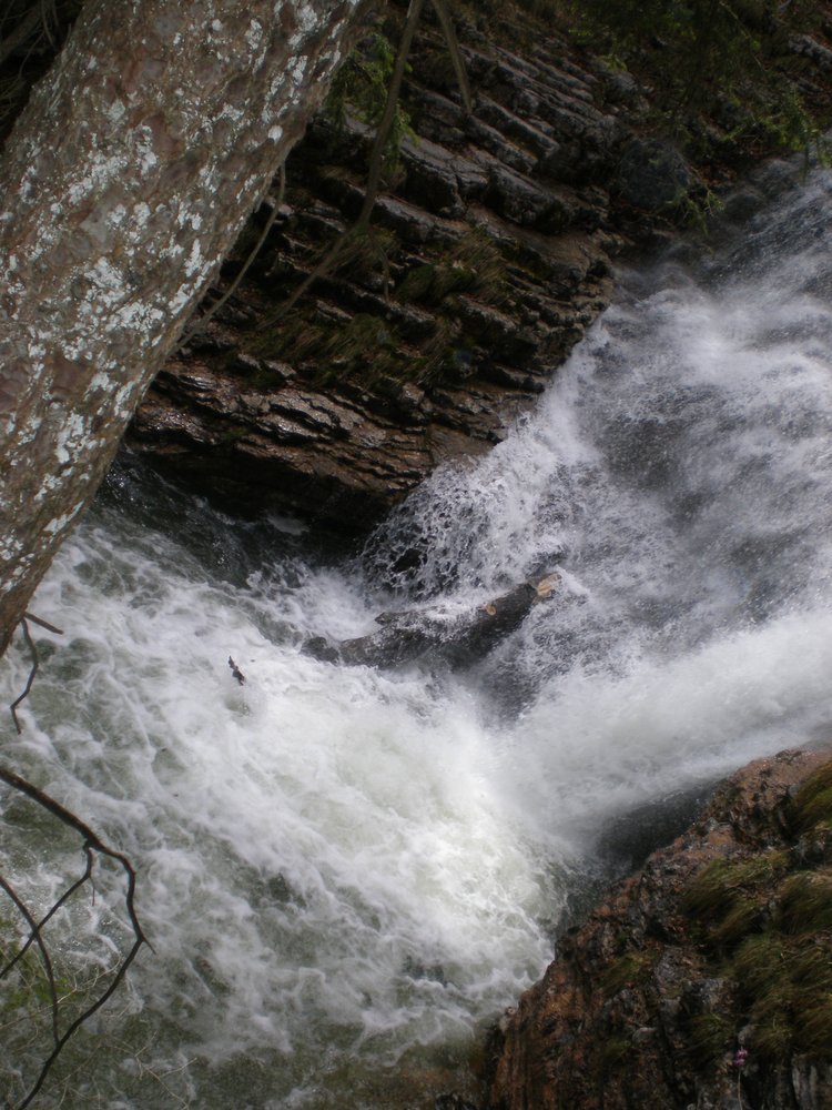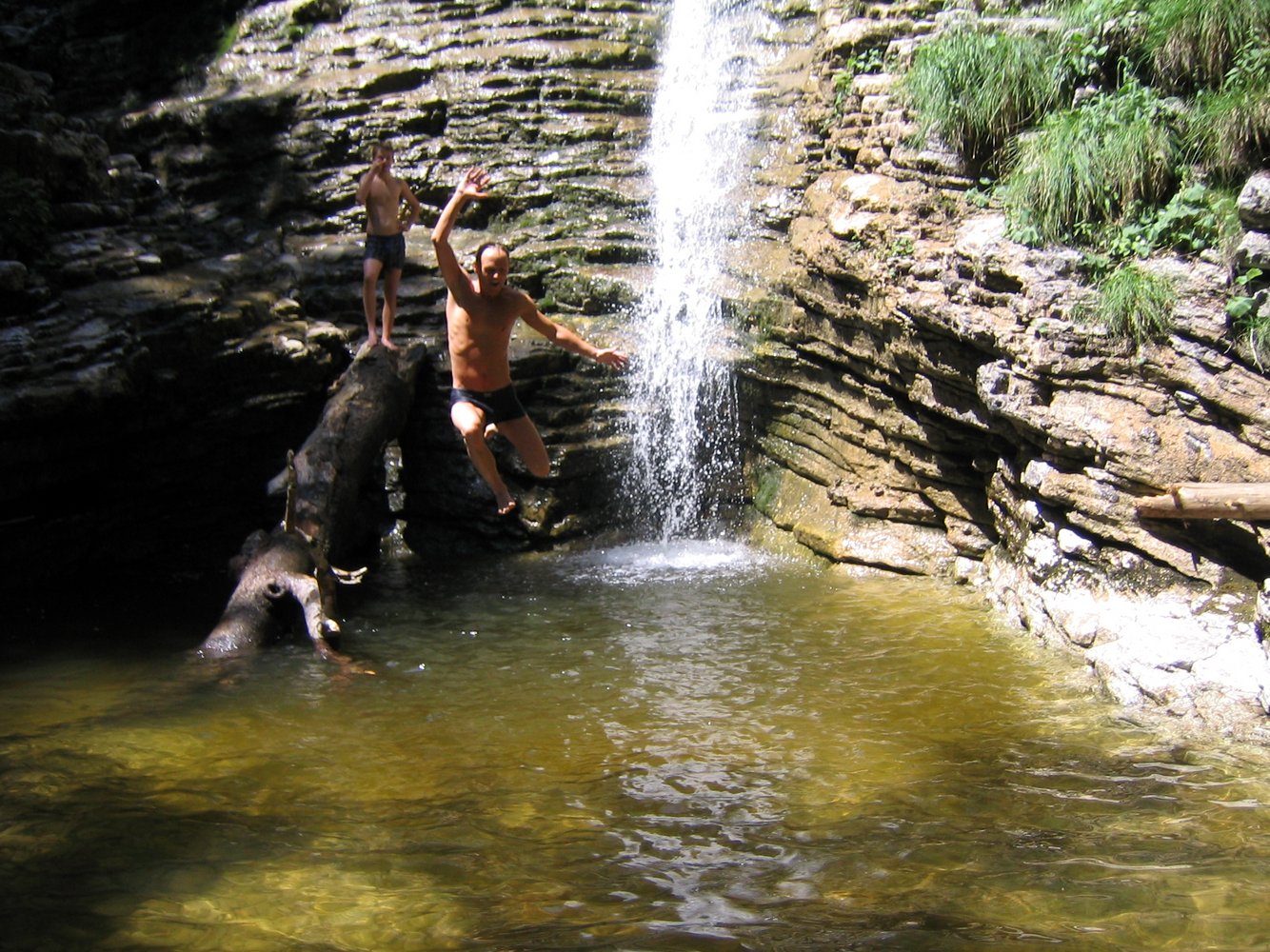 Variante Wiesler-Wasserfall: Nach der Wasserfallbrücke links, dann abwärts (B) zum Freudensprung (B/C). Auf der anderen Klammseite gelangt man zum "Sprung ins Leben" (B/C), mit dem man neuerlich die Klammseite wechselt. Gestuft aus der Klamm aufwärts (Stelle B/C) gelangt man auf ein Band. Auf diesem nach links (A) zum Wieslerwasserfall. Am Rand des Wasserfalles (Stelle B/C) bis zur "Großen Badewanne". Von dem Gumpen rechts zum Pfad aufsteigen.