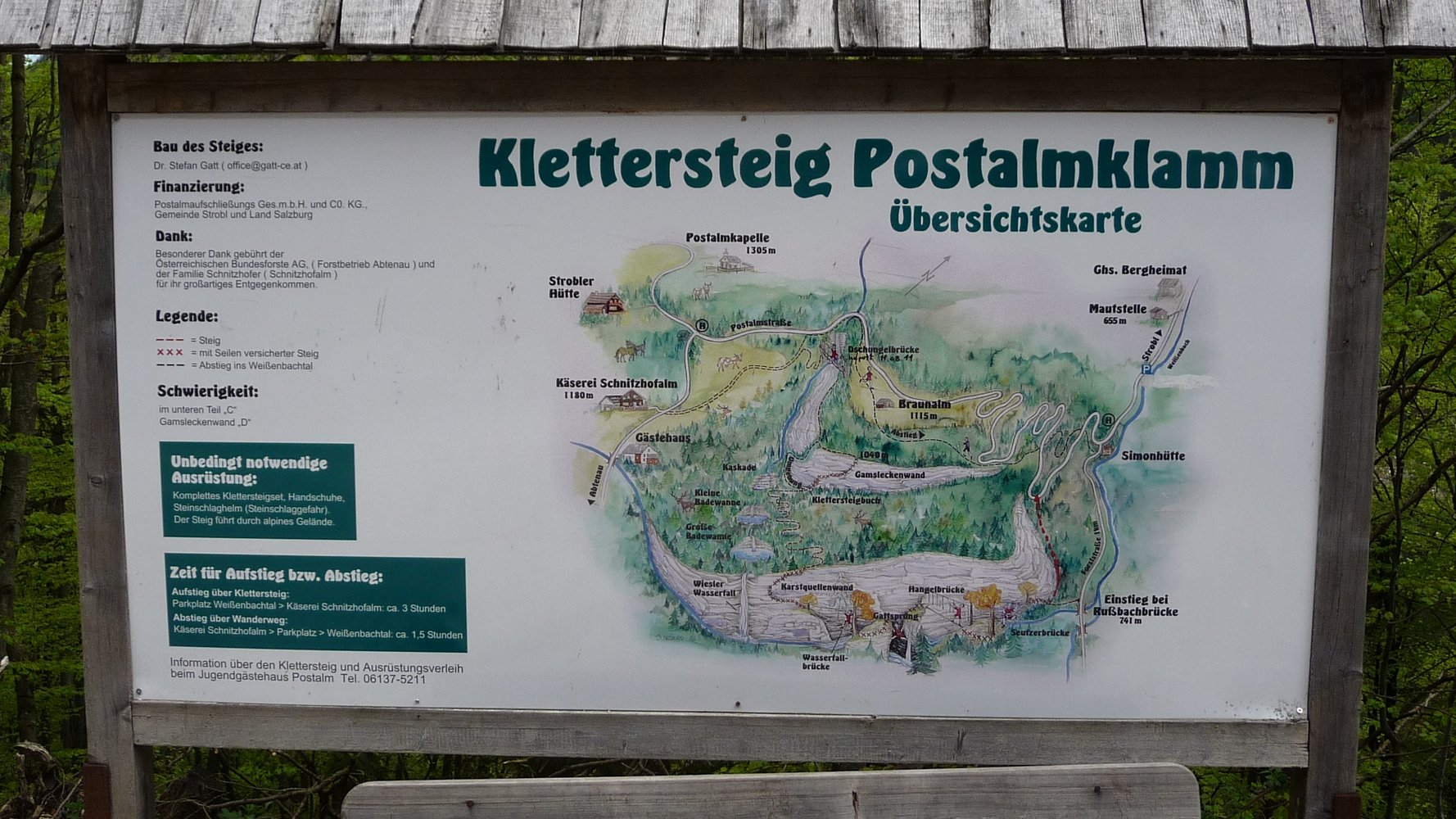 Ein rassiger Action-Klettersteig wurde von den Erbauern in die Postalm-Klamm gebohrt. Nicht weniger als 7 Seilbrücken führen über den tosenden Rußbach - eine davon ist eine „Hangelbrücke“ mit Seilen. Nach deren Überquerung steigt man entlang eines Wasserfalles zur steilen Gamsleckenwand auf. In dieser sind wieder richtige „Ferratisten“ gefragt, denn man muss schon kräftig zupacken (vor allem in der F-Variante), will man den Ausstieg in der leicht überhängenden Wand erreichen. Entstanden ist ein landschaftlich sehr reizvolles Klammabenteuer mit kleinen Mutproben, das man auf dem saftig-grünen Postalmplateau gemütlich ausklingen lassen kann.