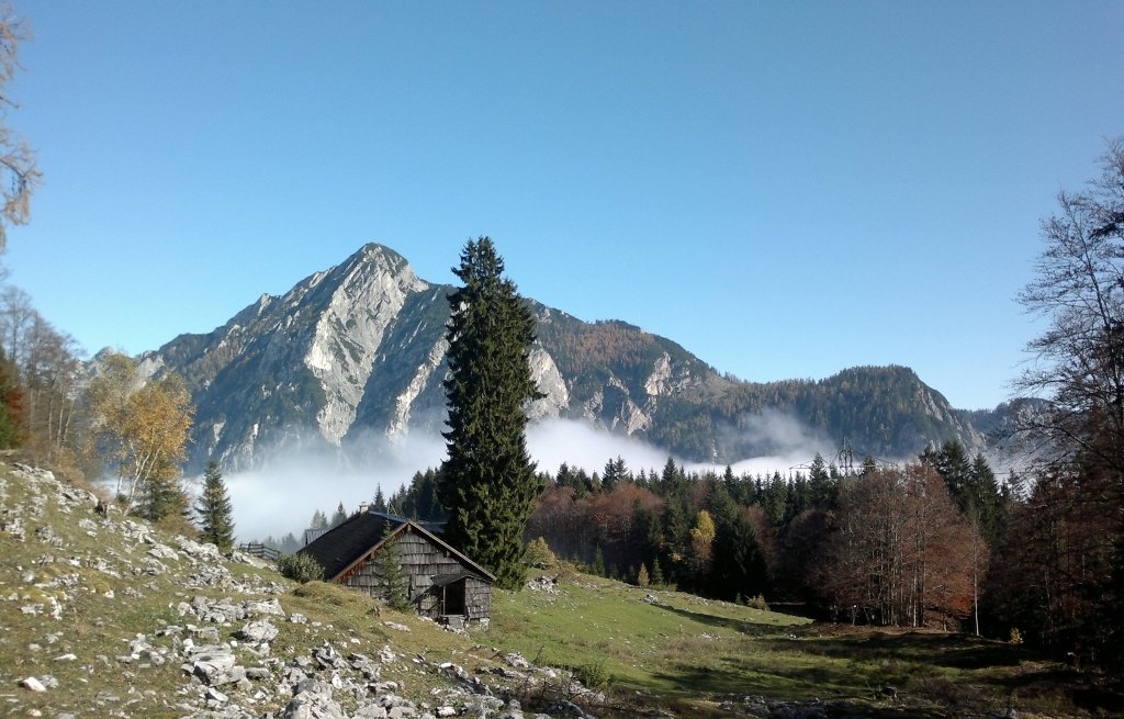 Oben rechts auf dem Wanderweg, welcher im Nahbereich der Postalmstraße verläuft, zurück zum Parkplatz absteigen. Alternativ kann man auch gleich nach der Gamsleckenwand gerade zum Abstiegsweg gehen (siehe Übersichtsbild).