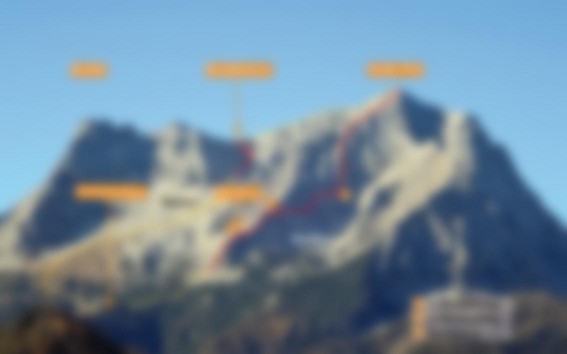 Die größten Schwierigkeiten gibt es im unteren Abschnitt. Am Affenschädel (kann man links umgehen) ist eine überhängende und trittarme D-Passage. An der Querung kommt ein Überhang (D). Die letzte D-Passage ist in der zweiten Höhle, man muss einen Spreizschritt machen und steil an der Südwestwand weiterklettern. Im oberen Wandteil klettert man sehr ausgesetzt und steil (kurz C/D, meist um C und B/C) an den beiden Steilstufen mit den vielen Leitern, naturgemäß packt man dort - den Abgrund unter sich wissend - etwas fester zu. Erst oben auf dem langen Südgrat wird das Gelände leichter.