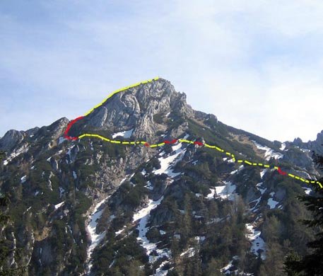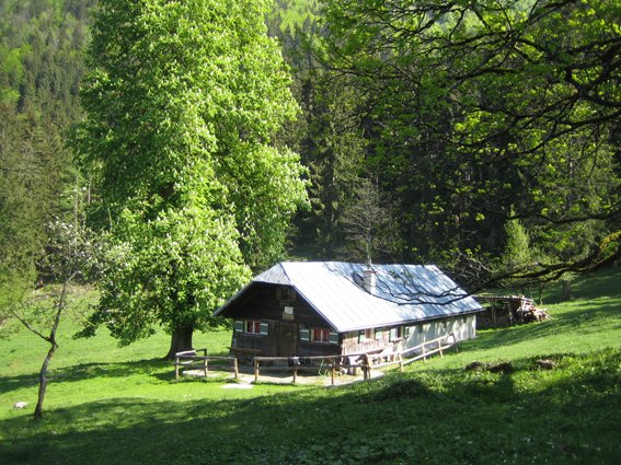 Der Forststraße immer entlang des Schöffaubaches bis zur Oberen Schöffaualm folgen. Auf markiertem Wanderweg zu den ersten Versicherungen auf ca. 1600 m.