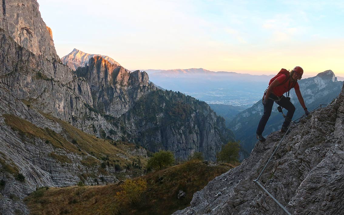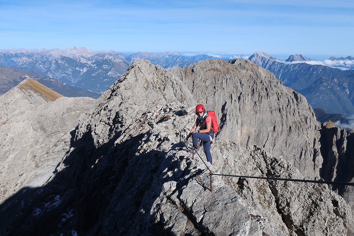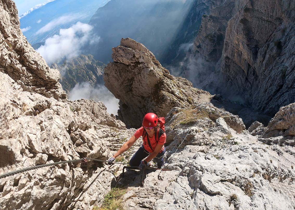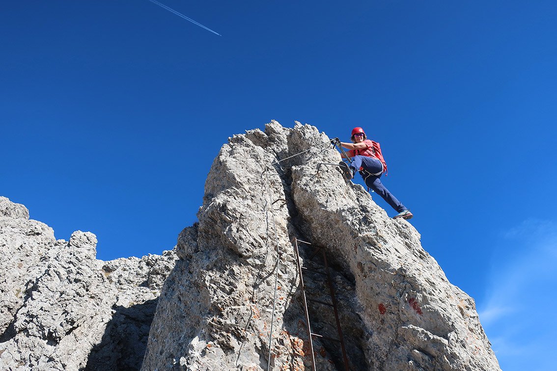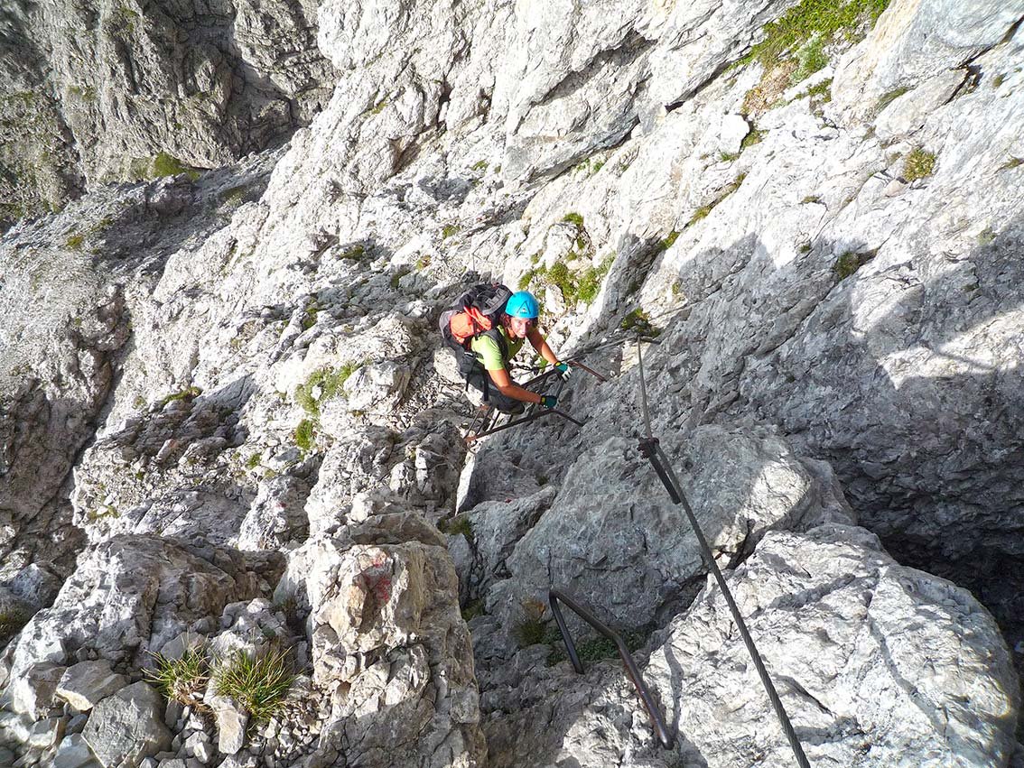 Komplette Klettersteigausrüstung und genug Flüssigkeit.