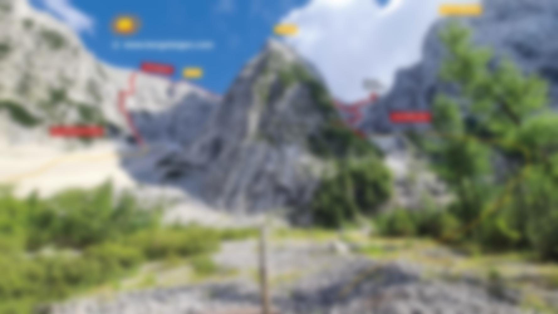 Super Alternative: Mit dem E-Bike kann man sehr schnell über die Forststraße (Nr. 512) Richtung Rifugio Zacchi (1380m) zusteigen. Kurz vor der Hütte nimmt man den Weg 513. Auf diesem wieder ca. 400 Meter weiter (gute Beschilderung), bis man zur Weggabelung kommt, wo man linker Hand den Weiterweg ins Schuttkar unter die Veunza nimmt. Das Schuttkar hoch (rote Markierungen) bis zur Mittelmorände des Schneefelds. Hier nach links queren zum Einstieg. (Dann Gesamtzeit Auto bis Einstieg Klettersteig ca. 1h 30min).