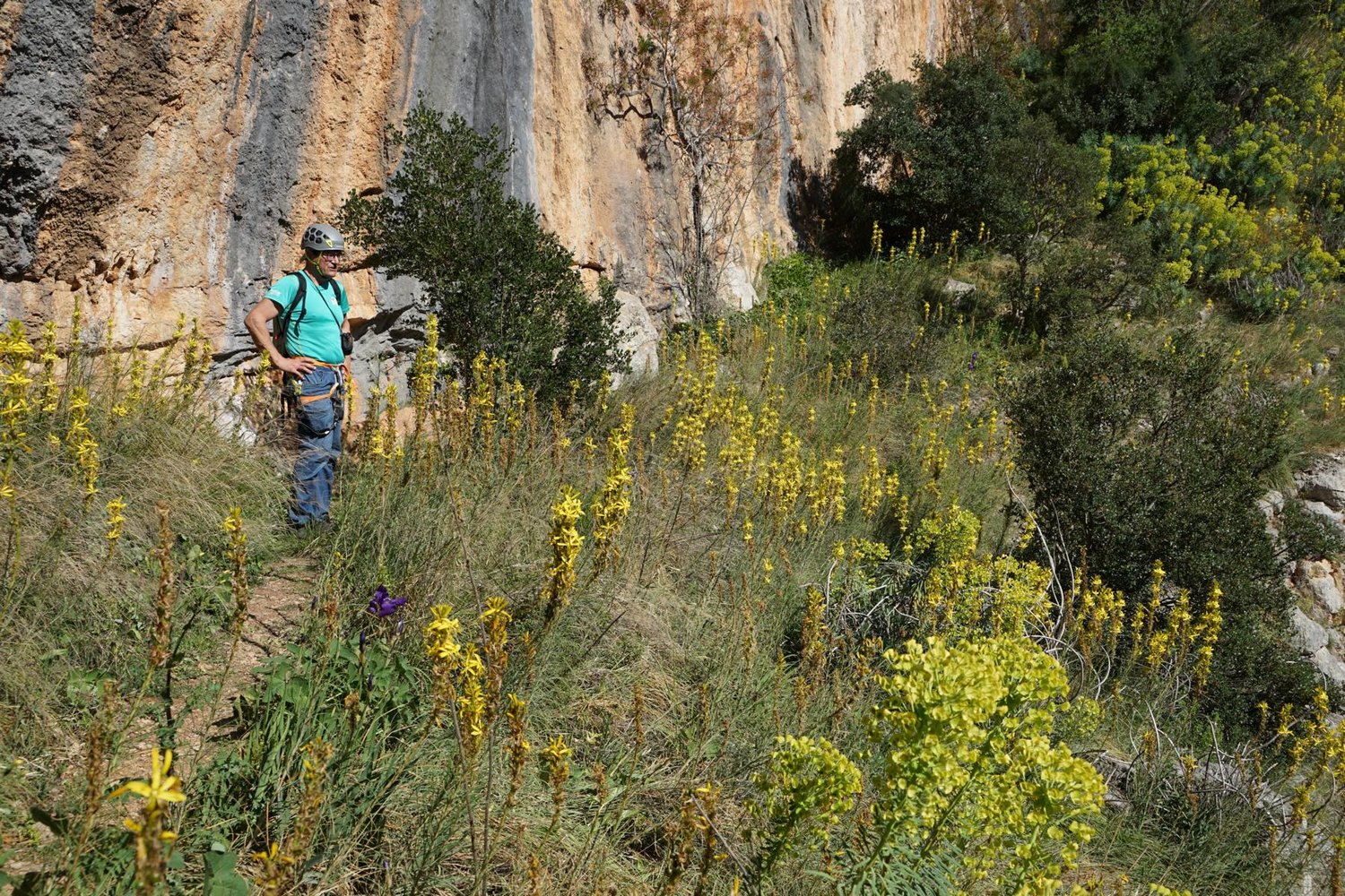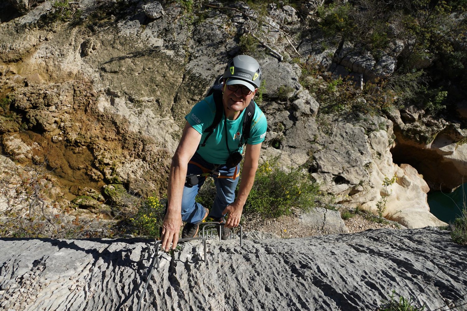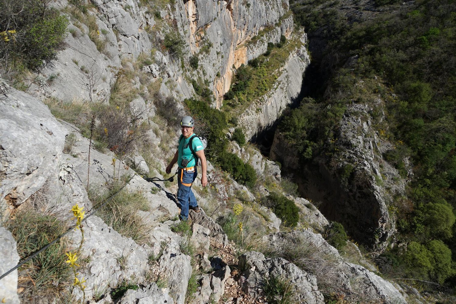 Komplette Klettersteigausrüstung und Helm.